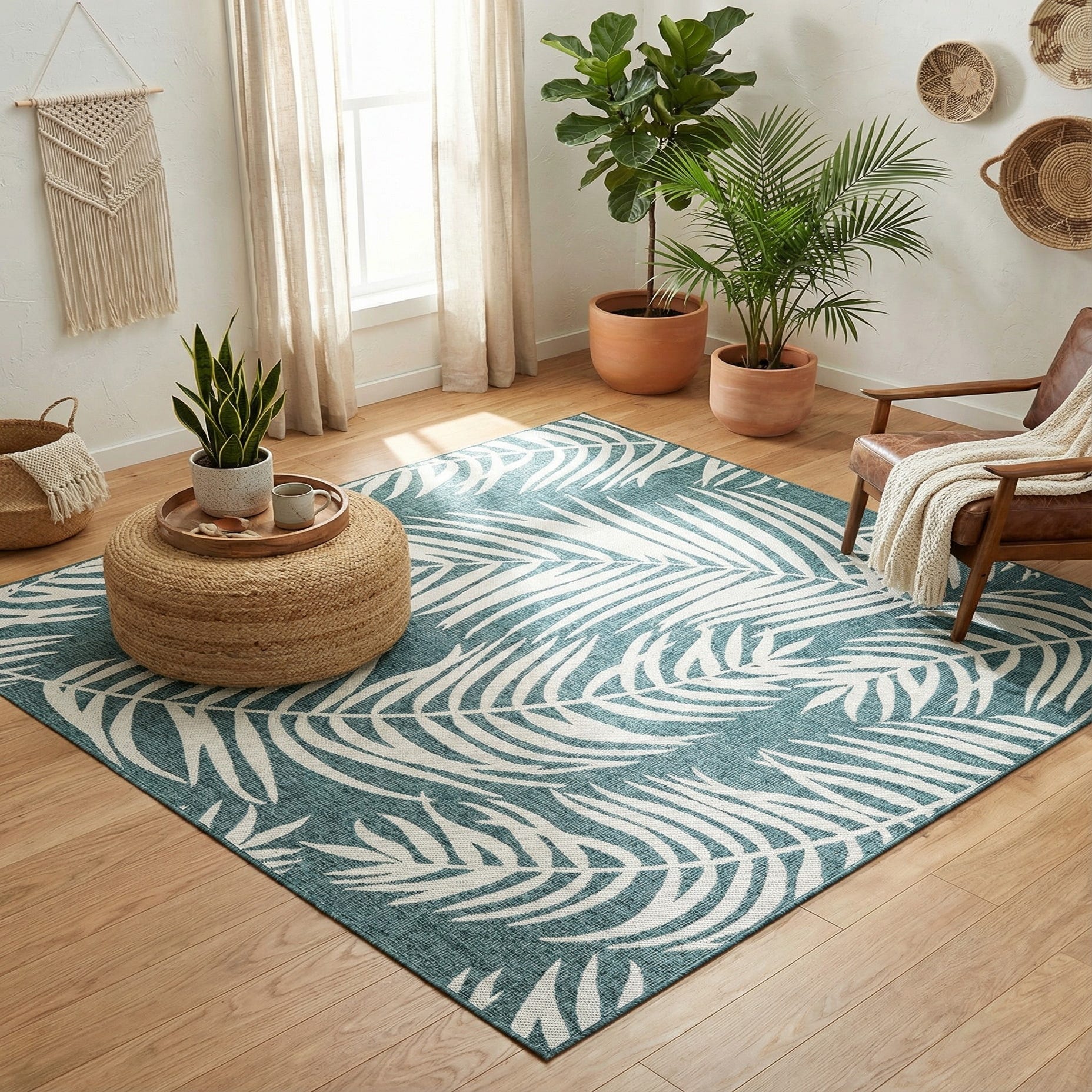7' 10 x 7' 10 Washable Botanical Indoor / Outdoor Square Rug