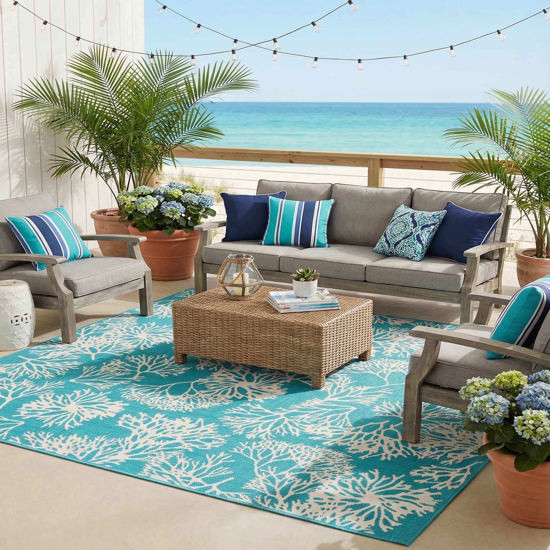 7' 10 x 7' 10 Washable Coastal Indoor / Outdoor Square Rug