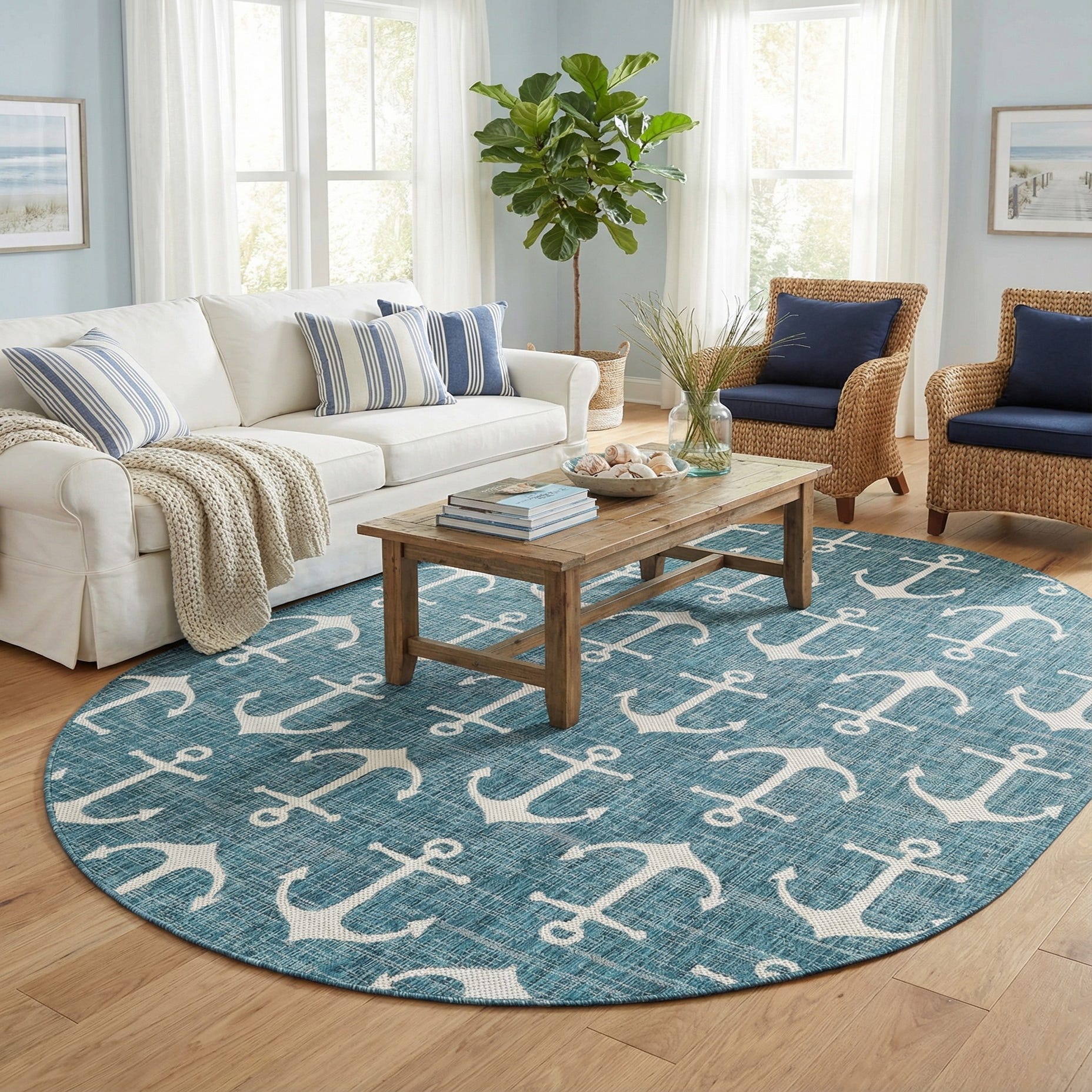 7' 10 x 10' Washable Coastal Indoor / Outdoor Oval Rug