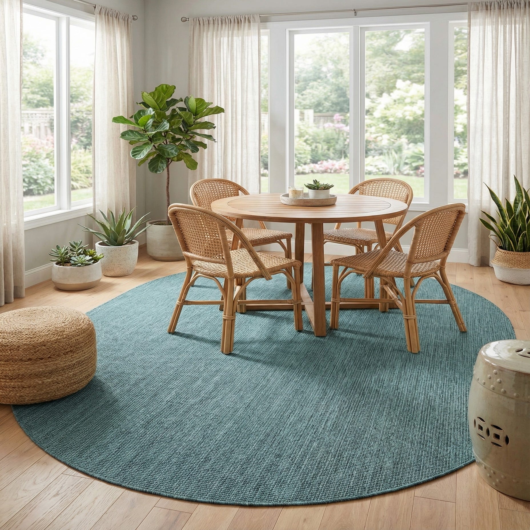 7' 10 x 10' Washable Solid Indoor / Outdoor Oval Rug