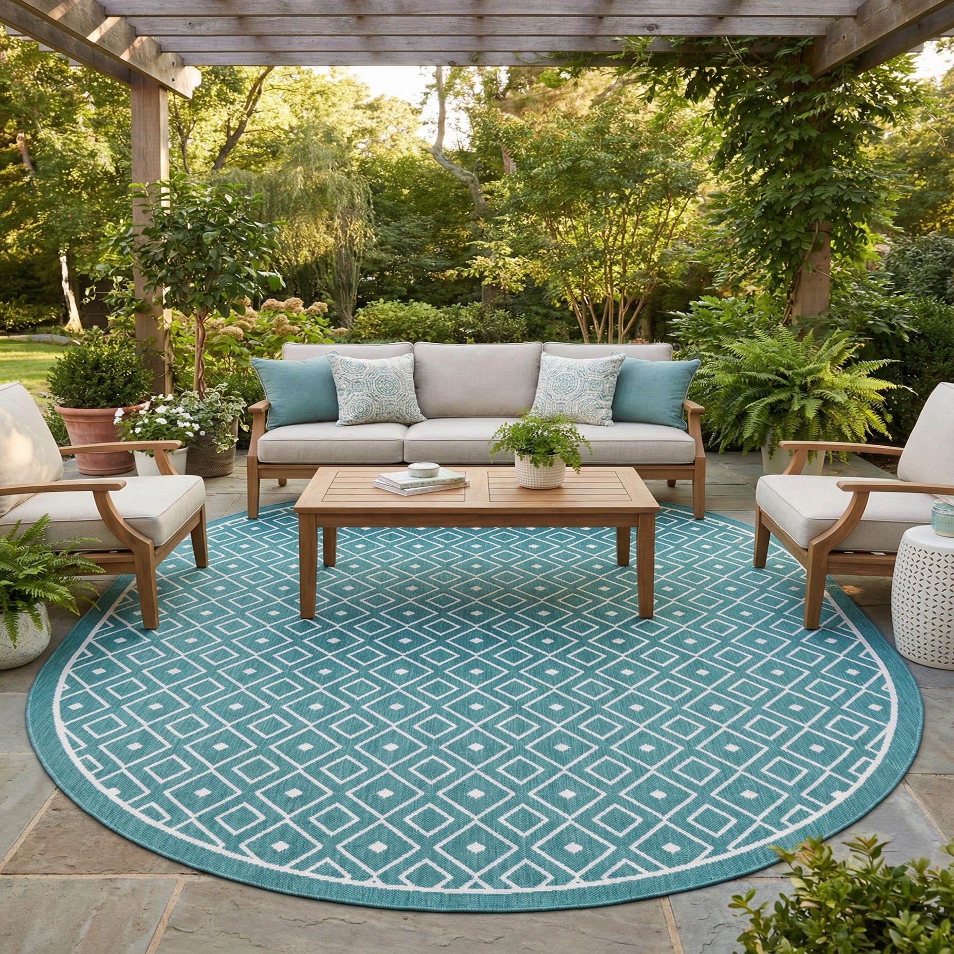 7' 10 x 10' Washable Trellis Indoor / Outdoor Oval Rug