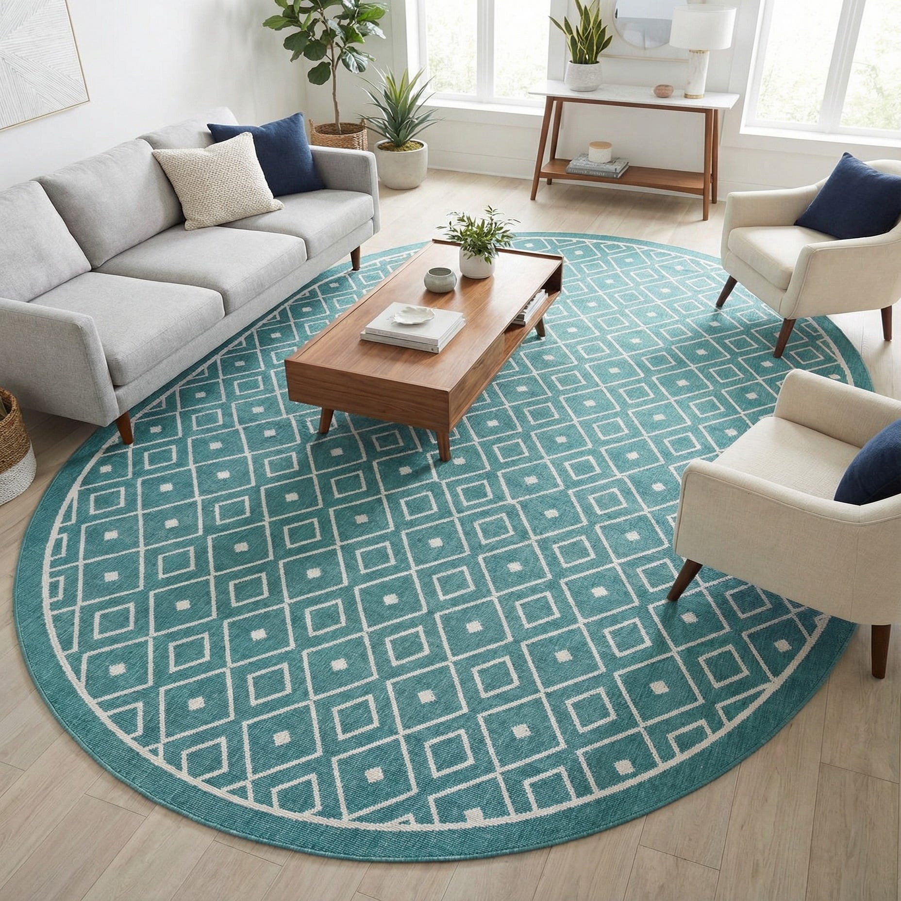 Primary image 7' 10 x 10'  Washable Trellis Indoor / Outdoor Oval Rug
