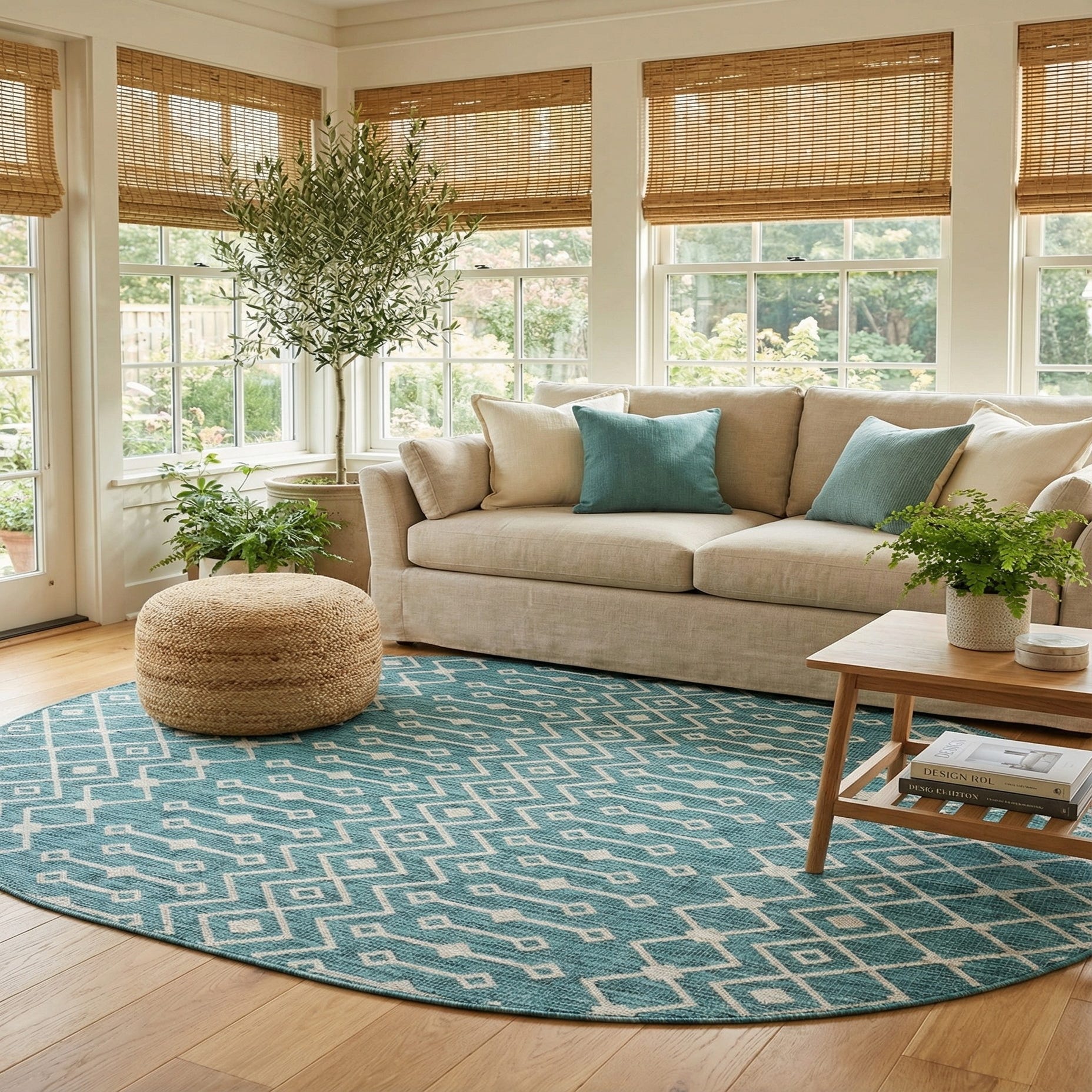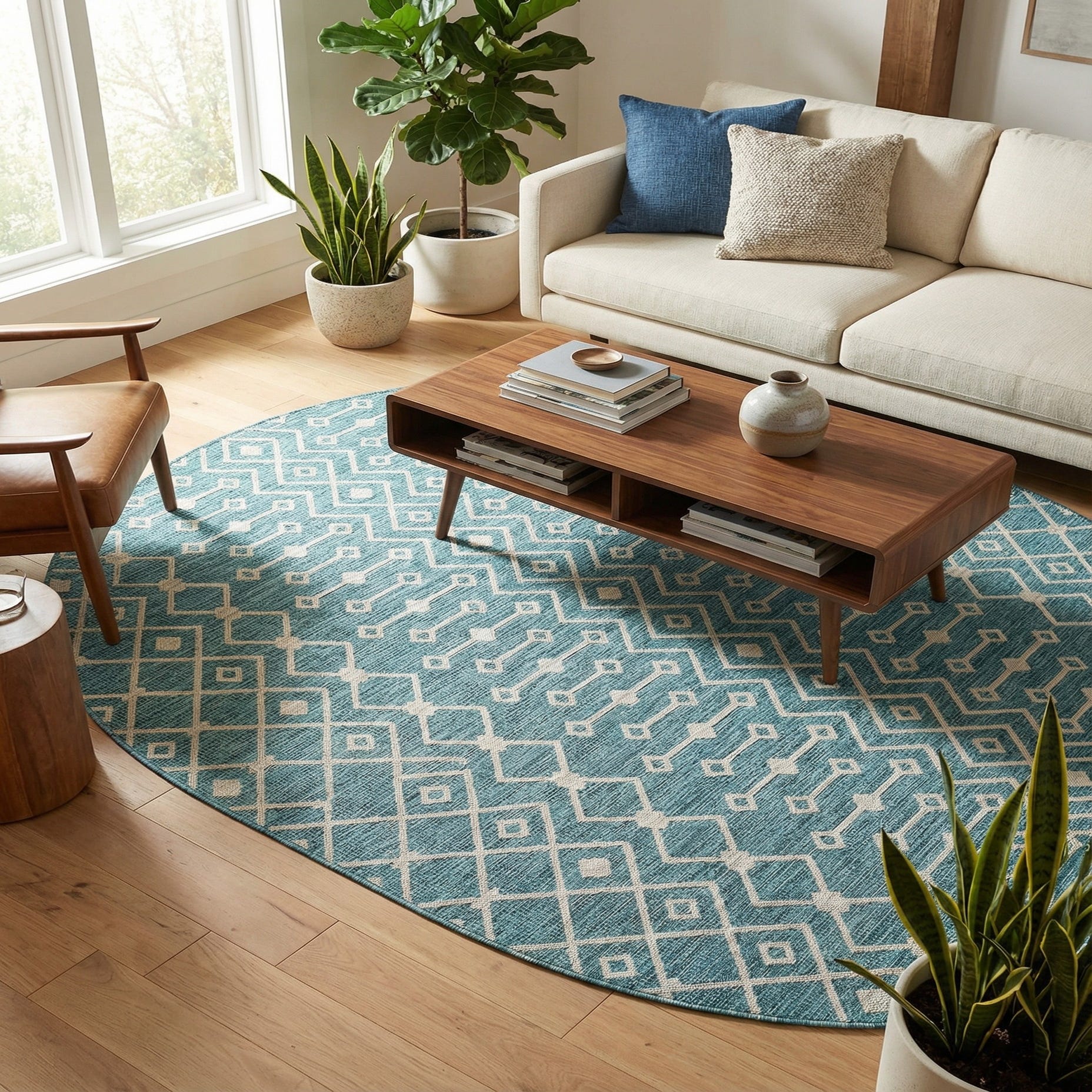 Primary image 7' 10 x 10'  Washable Trellis Indoor / Outdoor Oval Rug
