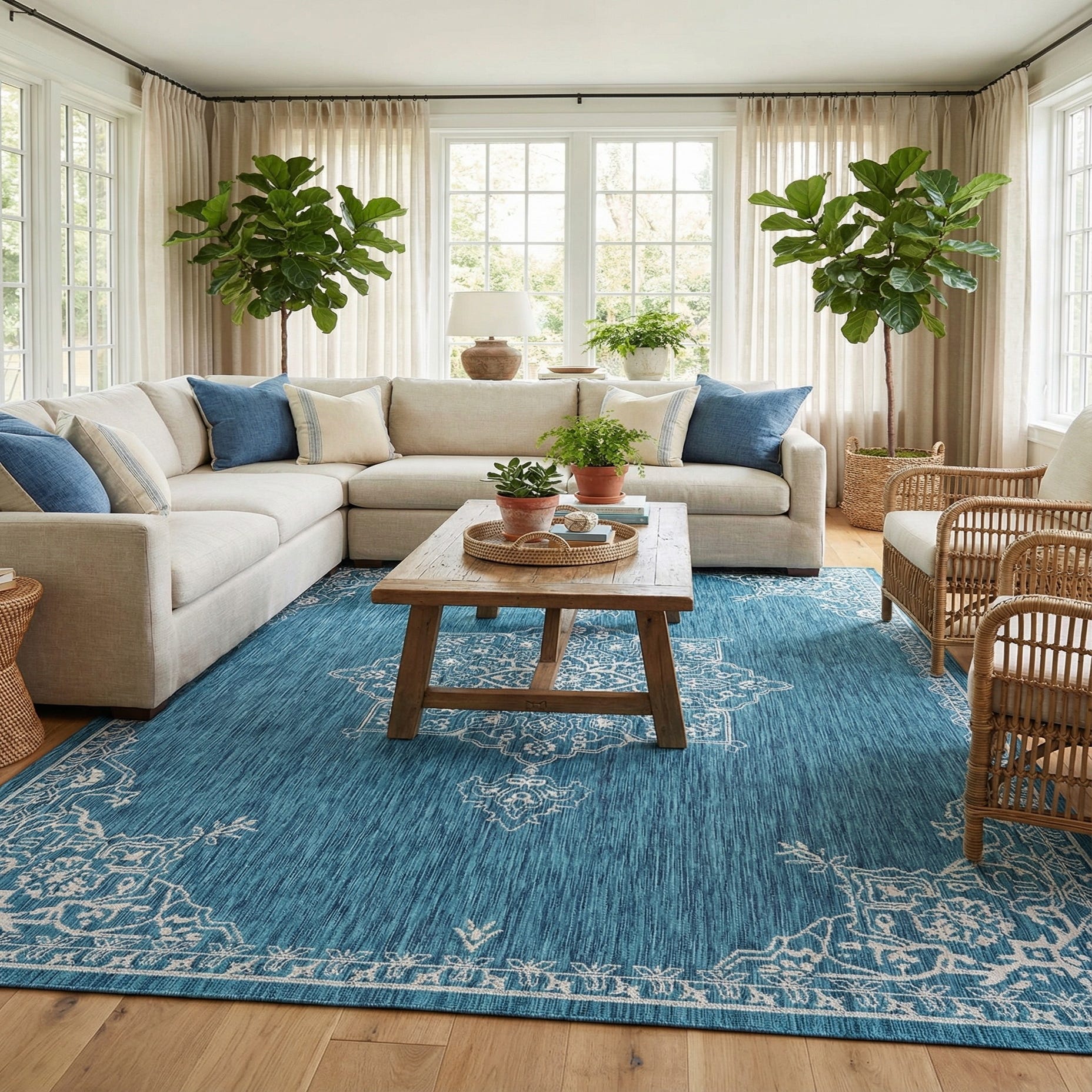 9' x 12' Washable Traditional Indoor / Outdoor Rug