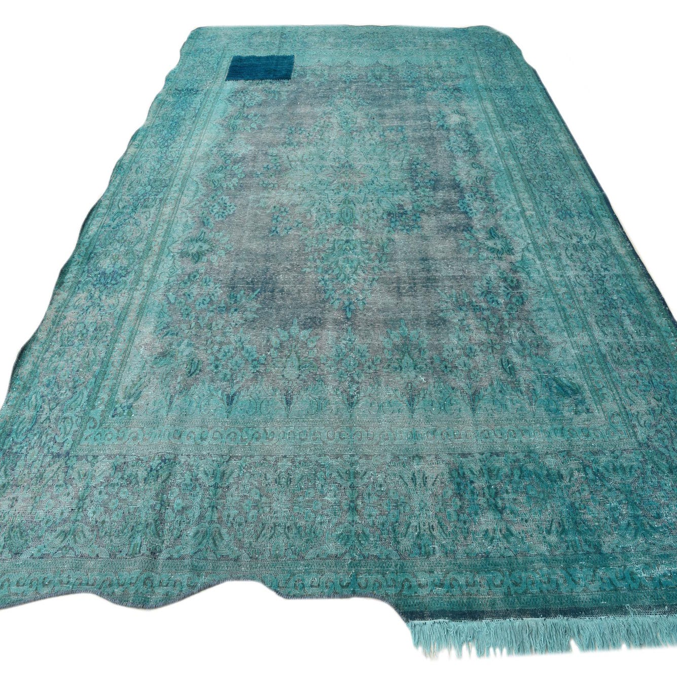 This Persian Ultra Vintage rug is an antique Persian Rug that has been washed, over-dyed, and then shaved down to a low pile. Look at the detail pictures to fully appreciate the uniqueness of this piece.