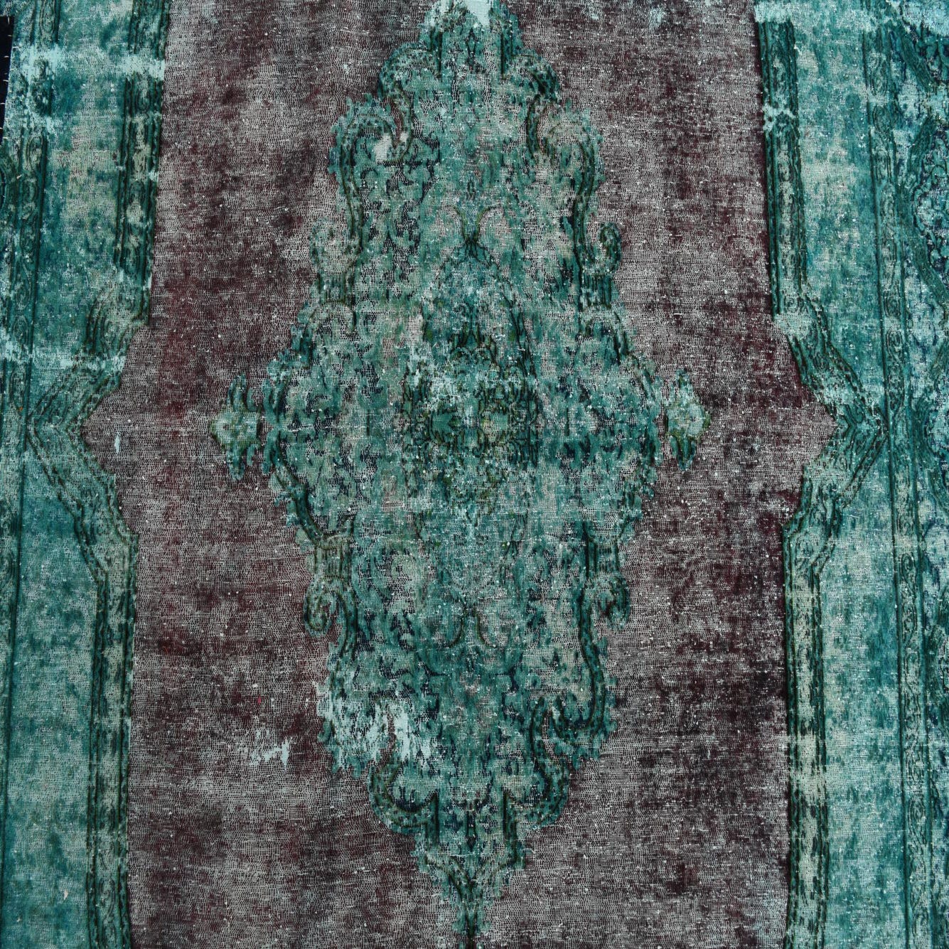 This Persian Ultra Vintage rug is an antique Persian Rug that has been washed, over-dyed, and then shaved down to a low pile. Look at the detail pictures to fully appreciate the uniqueness of this piece.