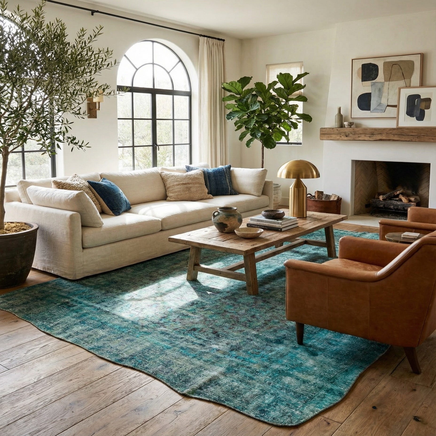 Primary color is Teal. Colors in this rug include: Teal, Navy Blue.