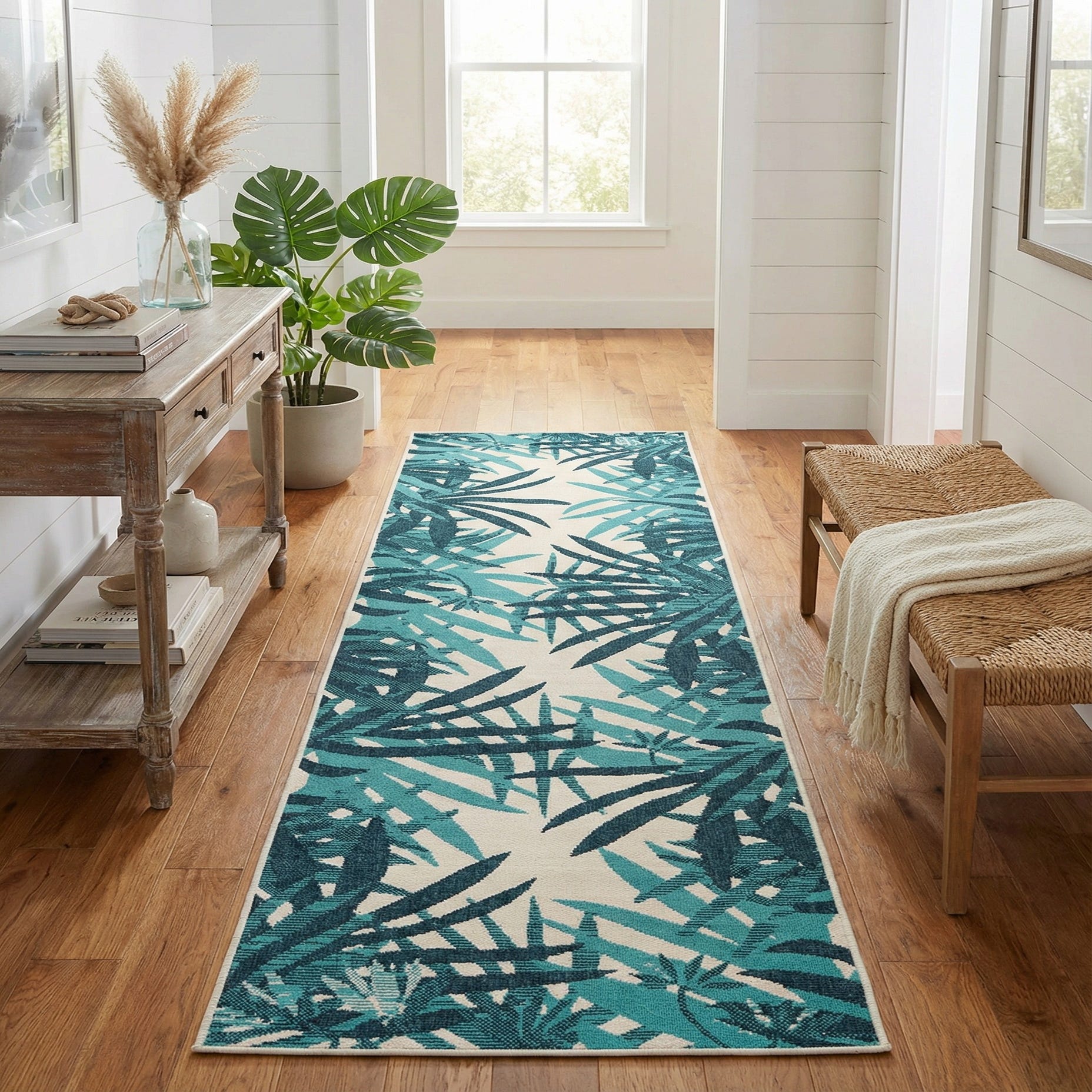 2' 7 x 12' Washable Botanical Indoor / Outdoor Runner Rug