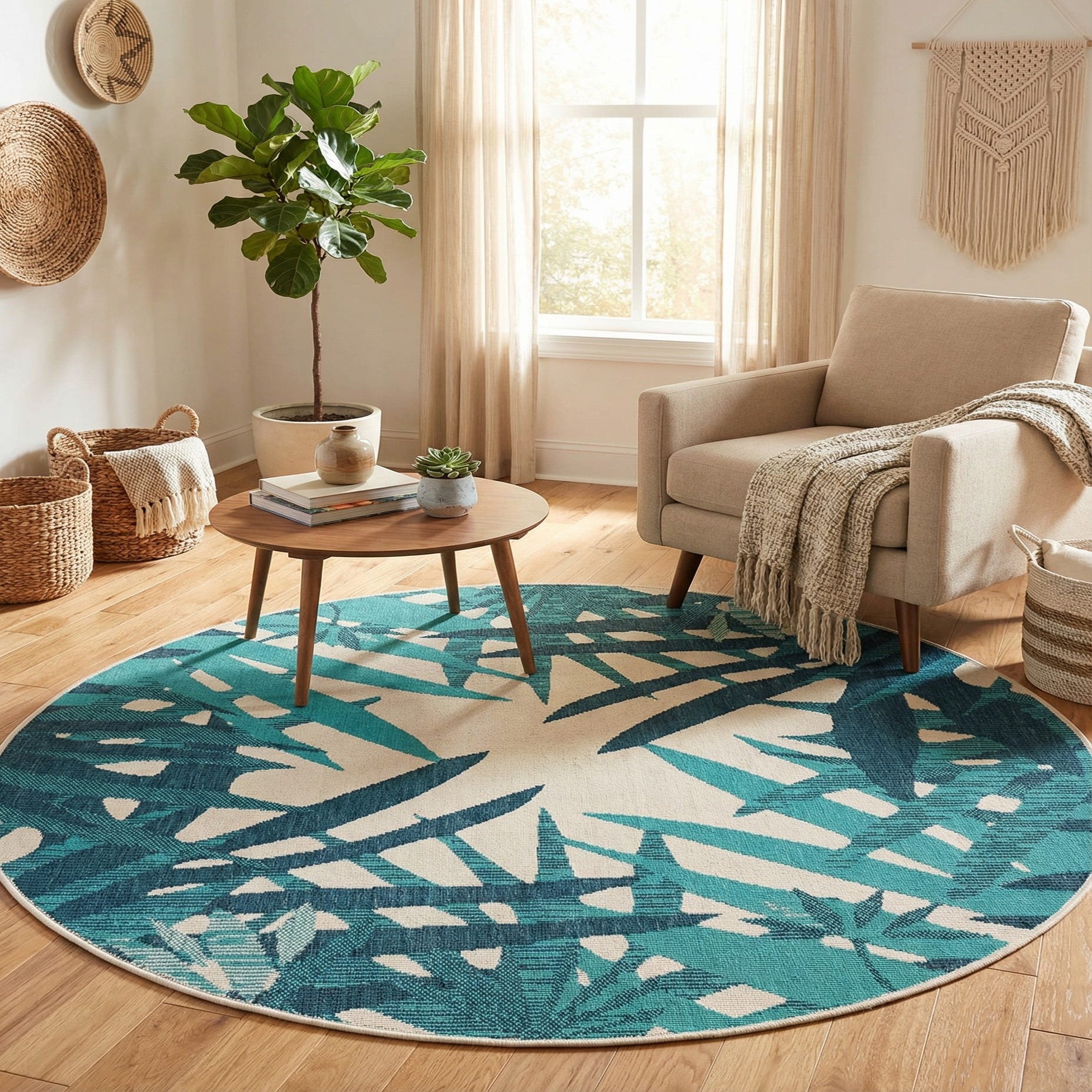 5' x 5' Washable Botanical Indoor / Outdoor Round Rug