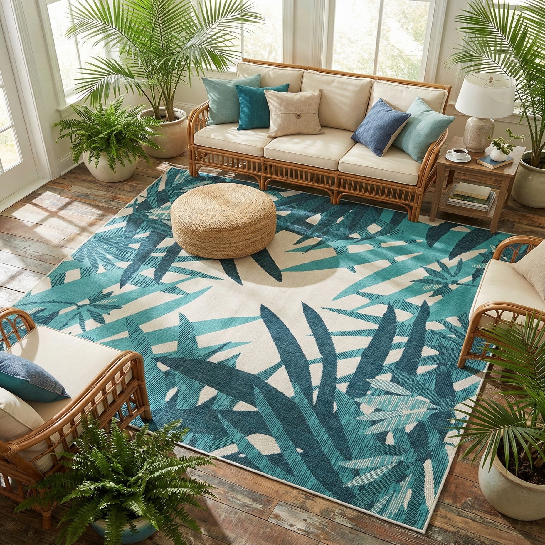 7' 10 x 7' 10 Washable Botanical Indoor / Outdoor Square Rug