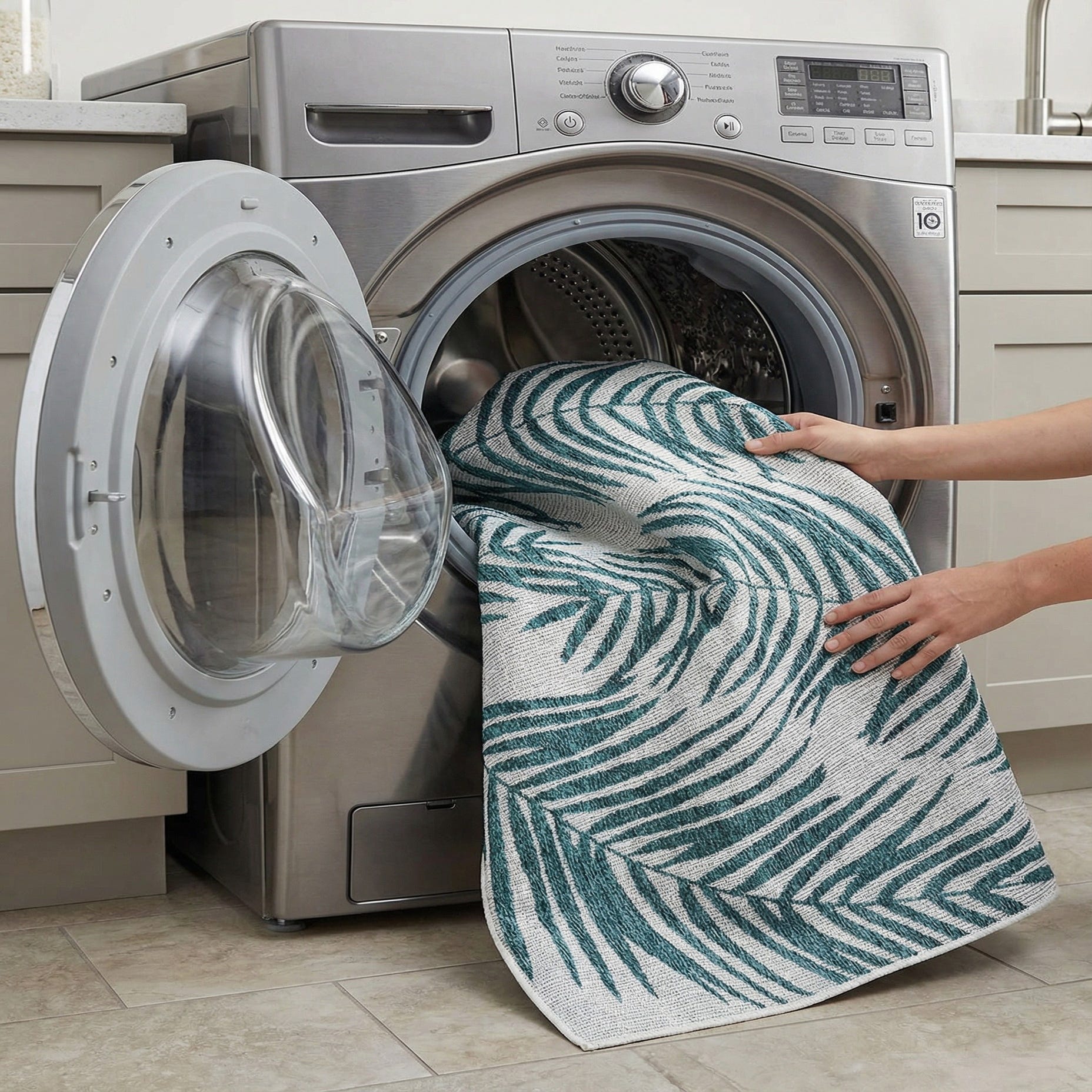 Primary image 4' x 6'  Washable Botanical Indoor / Outdoor Rug