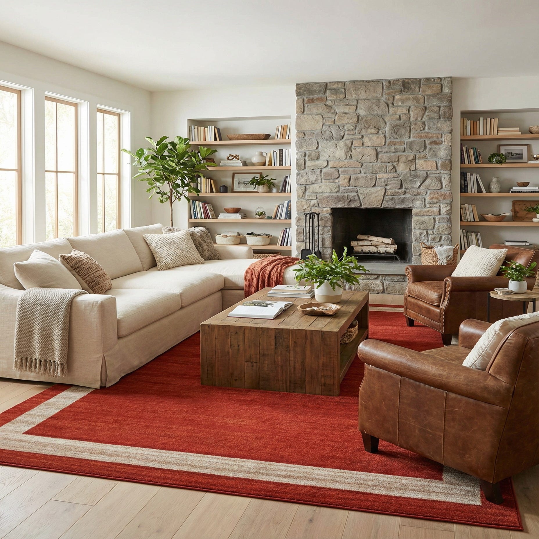 Primary color is Terracotta. Colors in this rug include: Terracotta, Ivory, Light Brown.