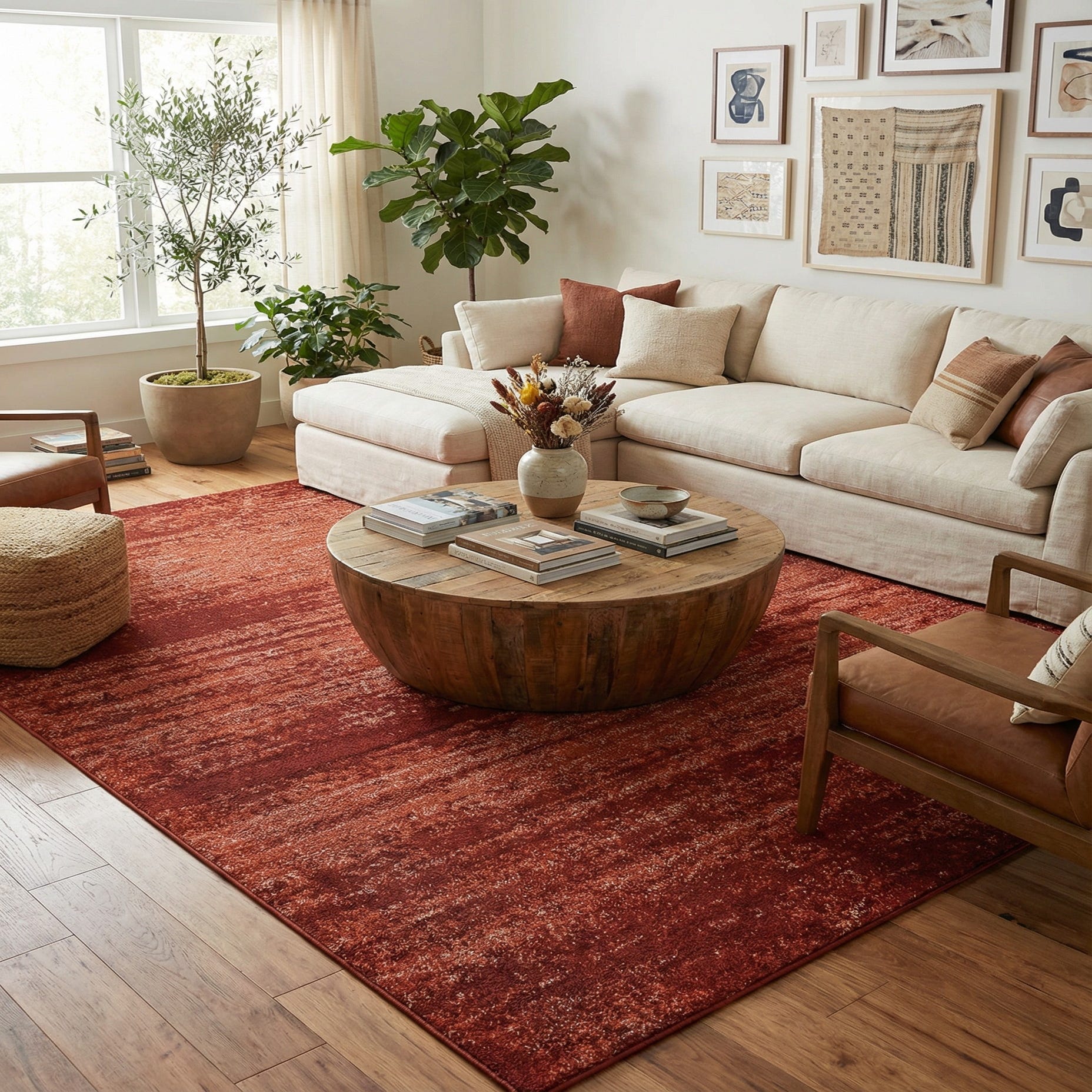 Primary color is Terracotta. Colors in this rug include: Terracotta, Red, Rust Red.