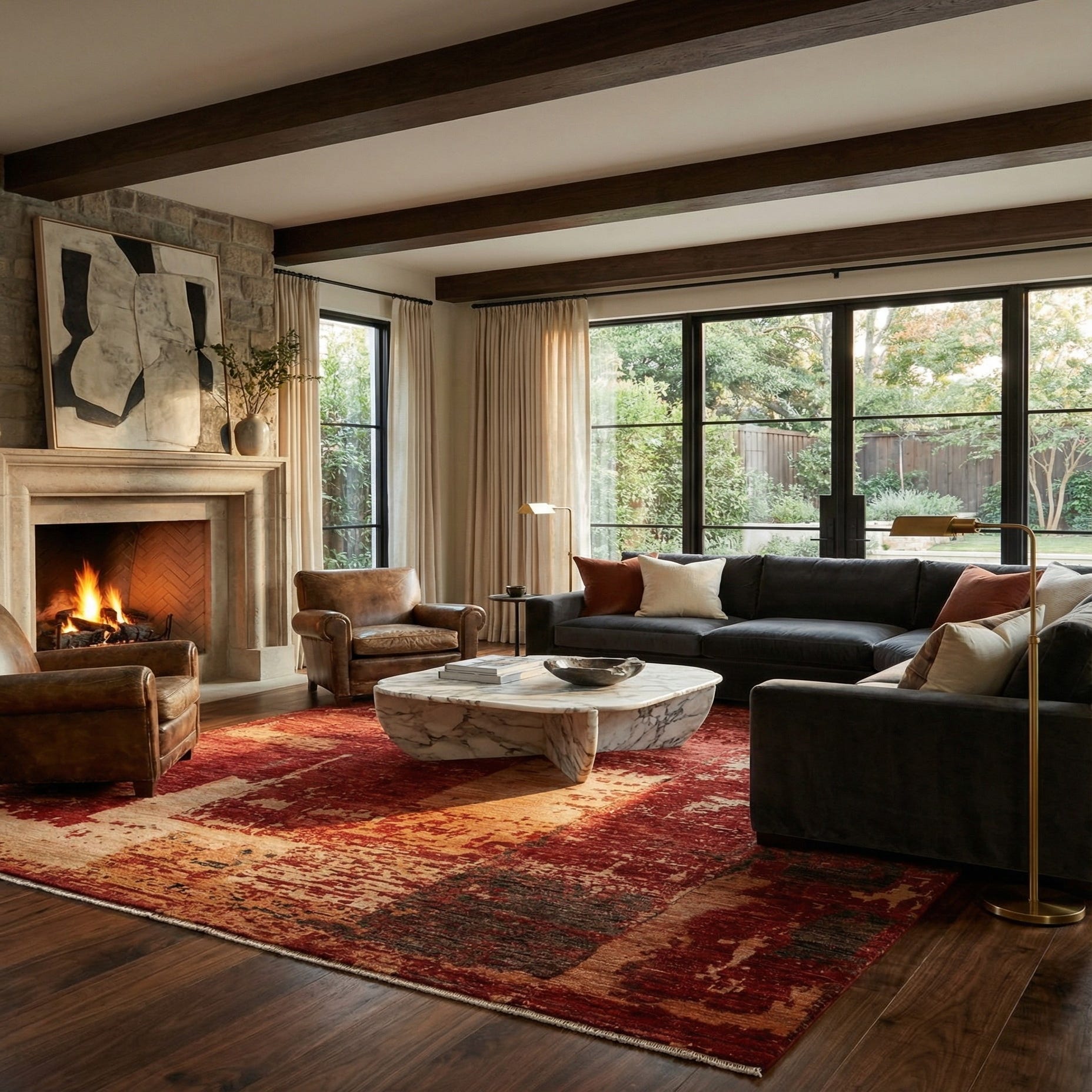 Primary color is Terracotta. Colors in this rug include: Terracotta, Beige, Brown, Ivory.