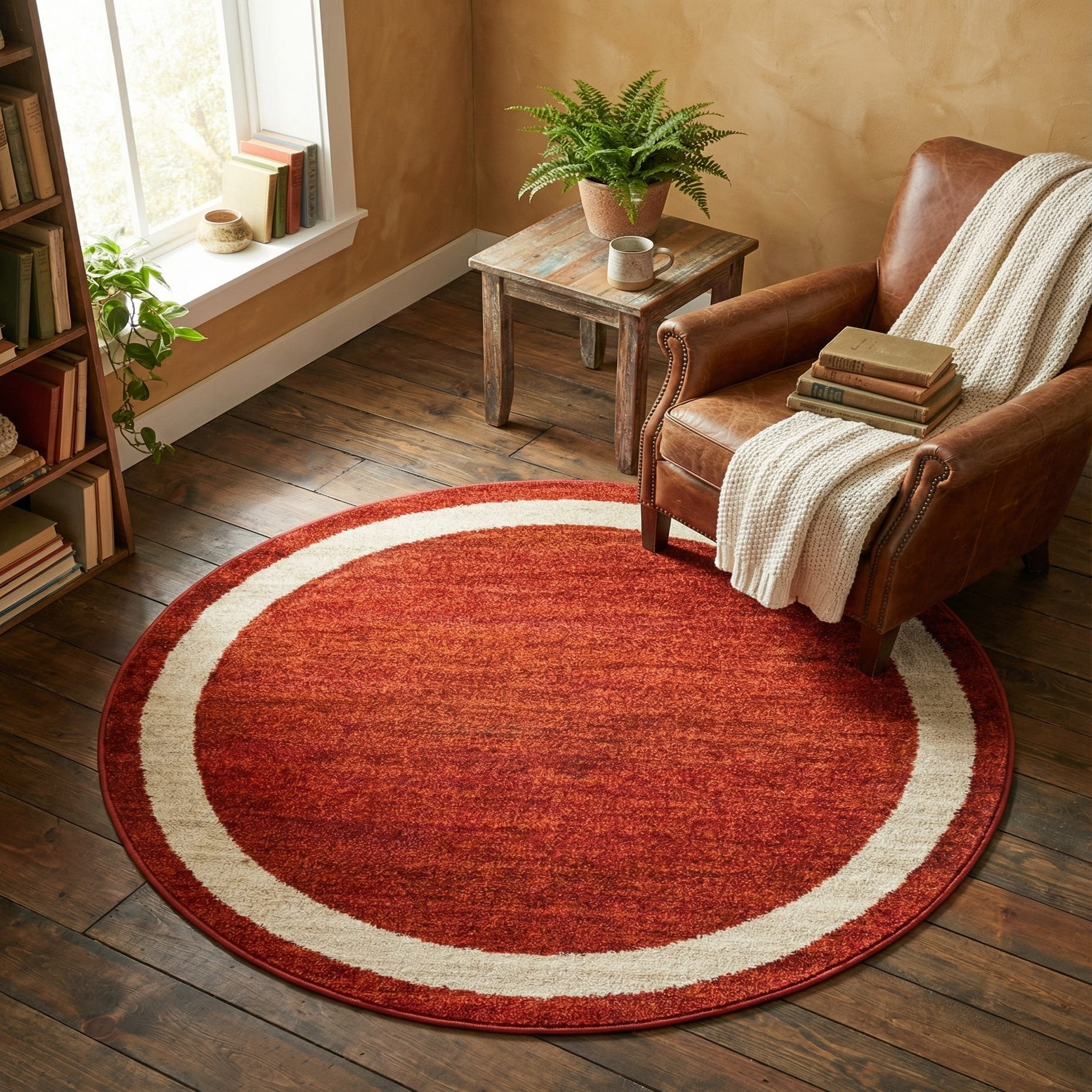 Primary color is Terracotta. Colors in this rug include: Terracotta, Ivory, Light Brown.