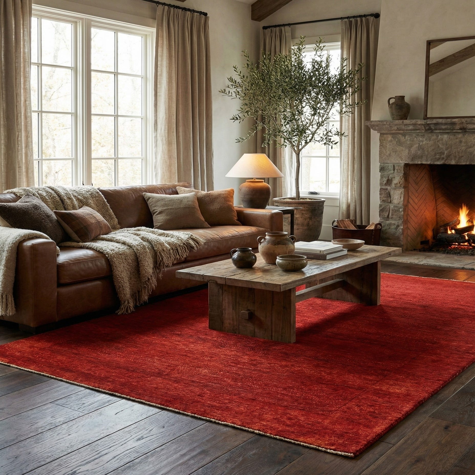 Primary color is Terracotta. Colors in this rug include: Terracotta, Orange.