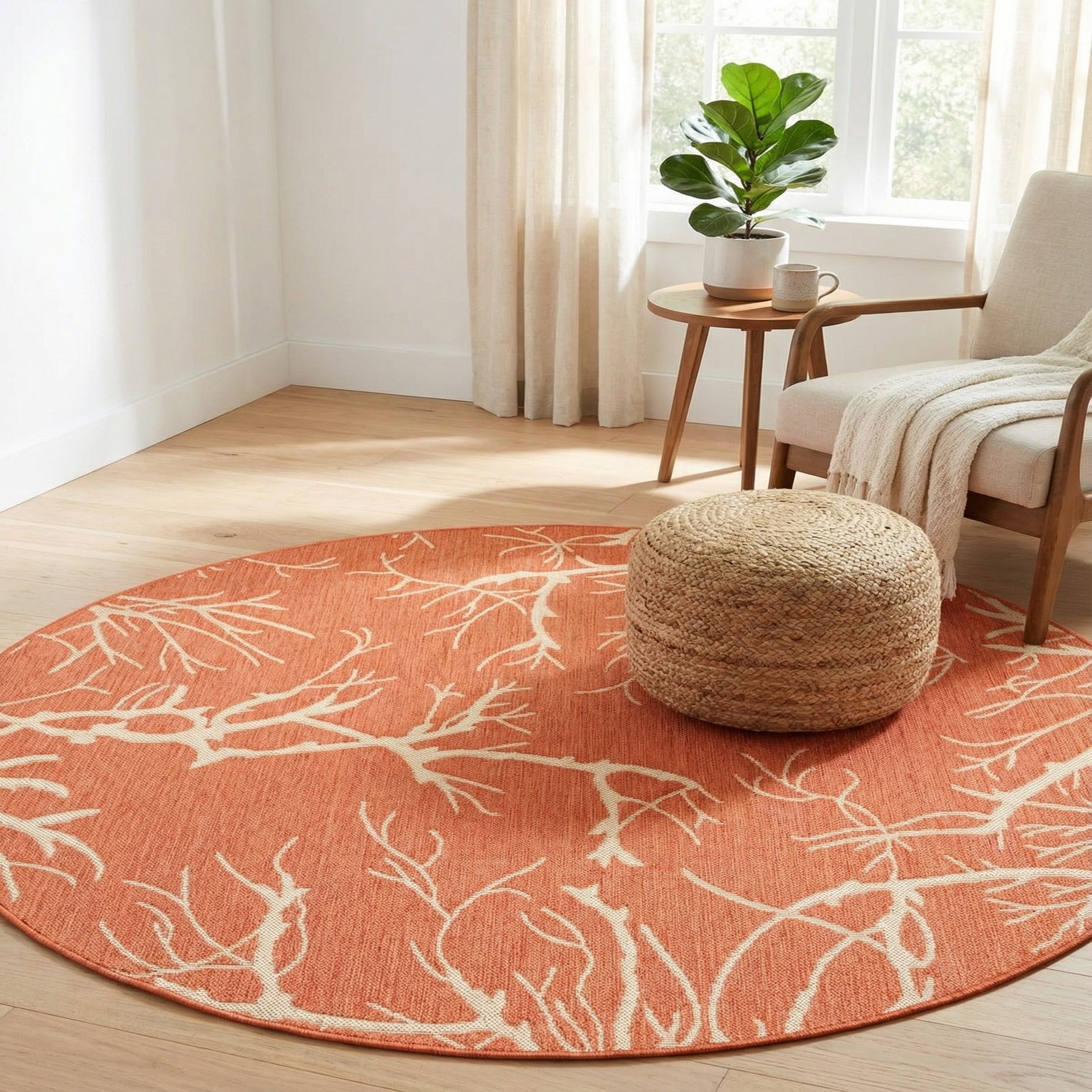 6' x 6' Washable Botanical Indoor / Outdoor Round Rug