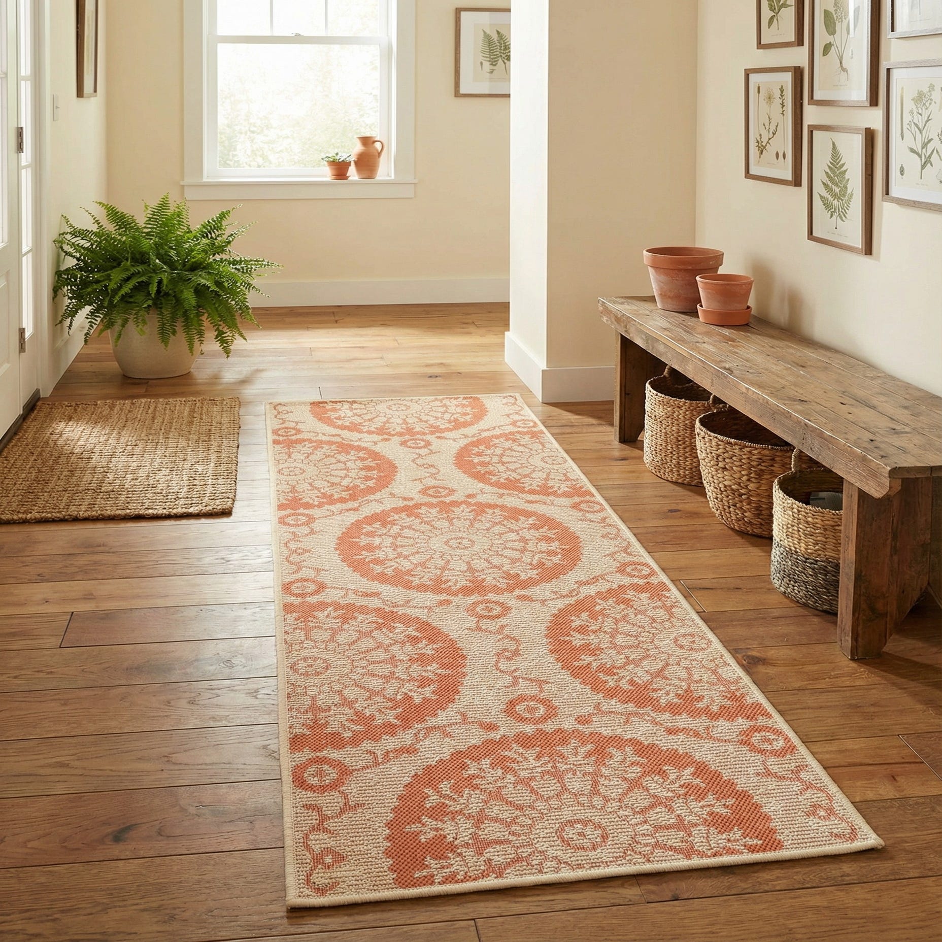 2' 2 x 6' Washable Botanical Indoor / Outdoor Runner Rug