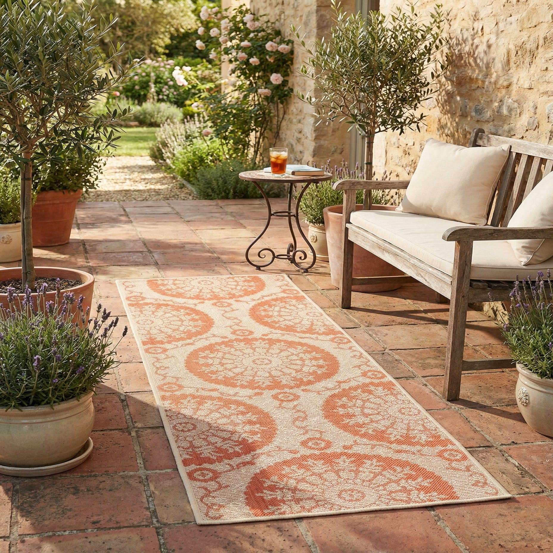 Primary color is Terracotta. Colors in this rug include: Terracotta, Beige.