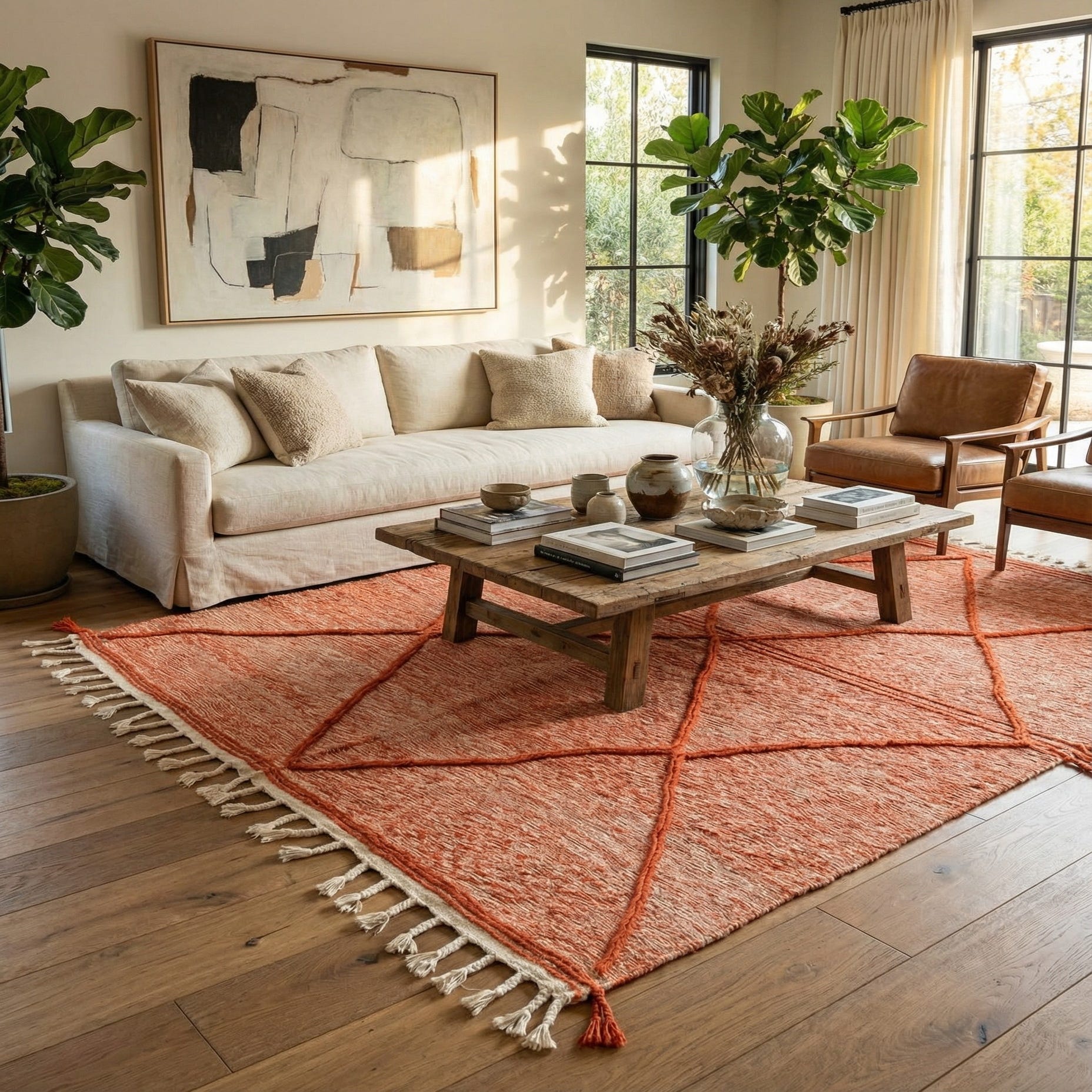 Primary color is Terracotta. Colors in this rug include: Terracotta, Ivory.