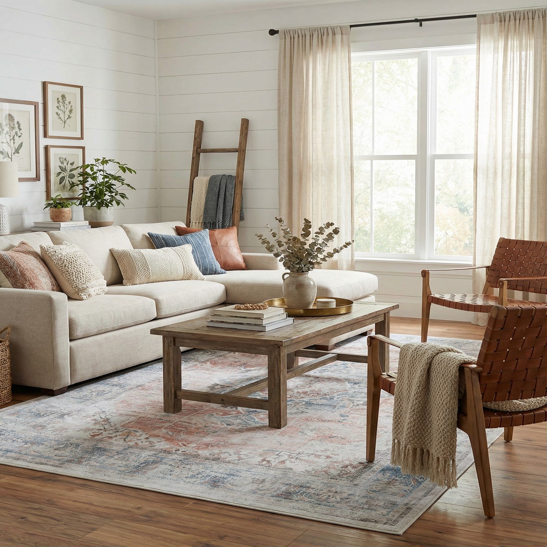 Primary color is Terracotta. Colors in this rug include: Terracotta, Beige, Brown, Navy Blue.
