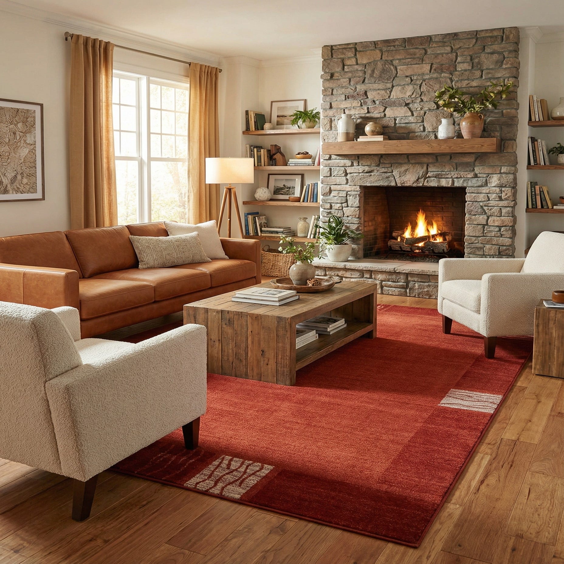 Primary color is Terracotta. Colors in this rug include: Terracotta, Rust Red, Ivory.