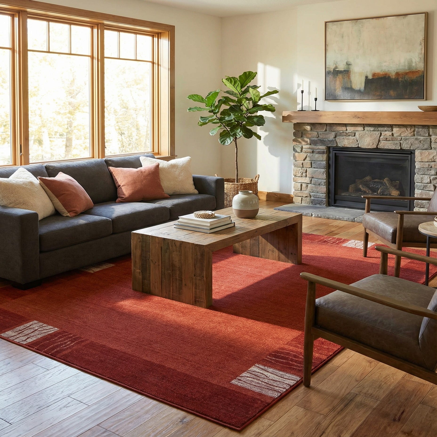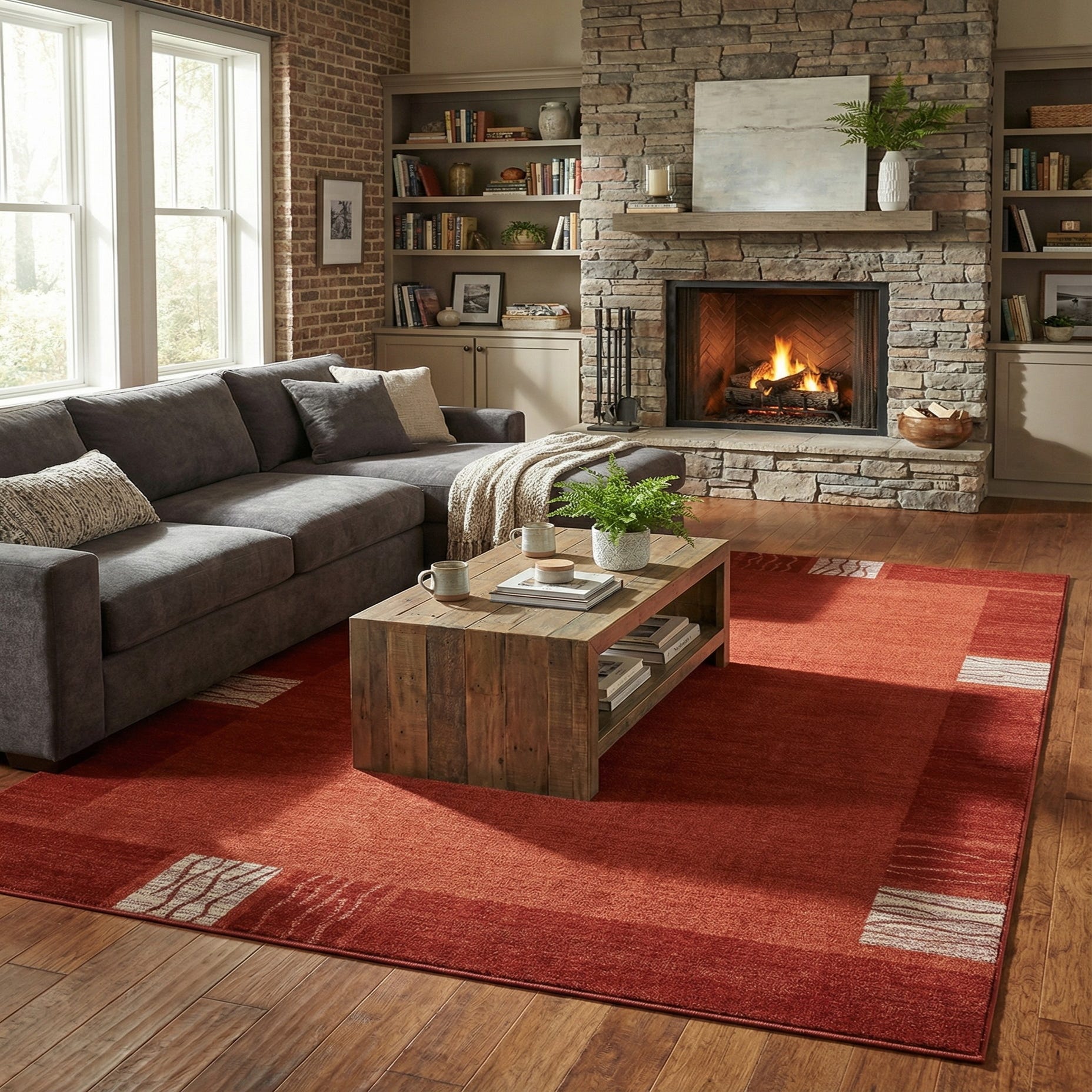 Primary color is Terracotta. Colors in this rug include: Terracotta, Rust Red, Ivory.