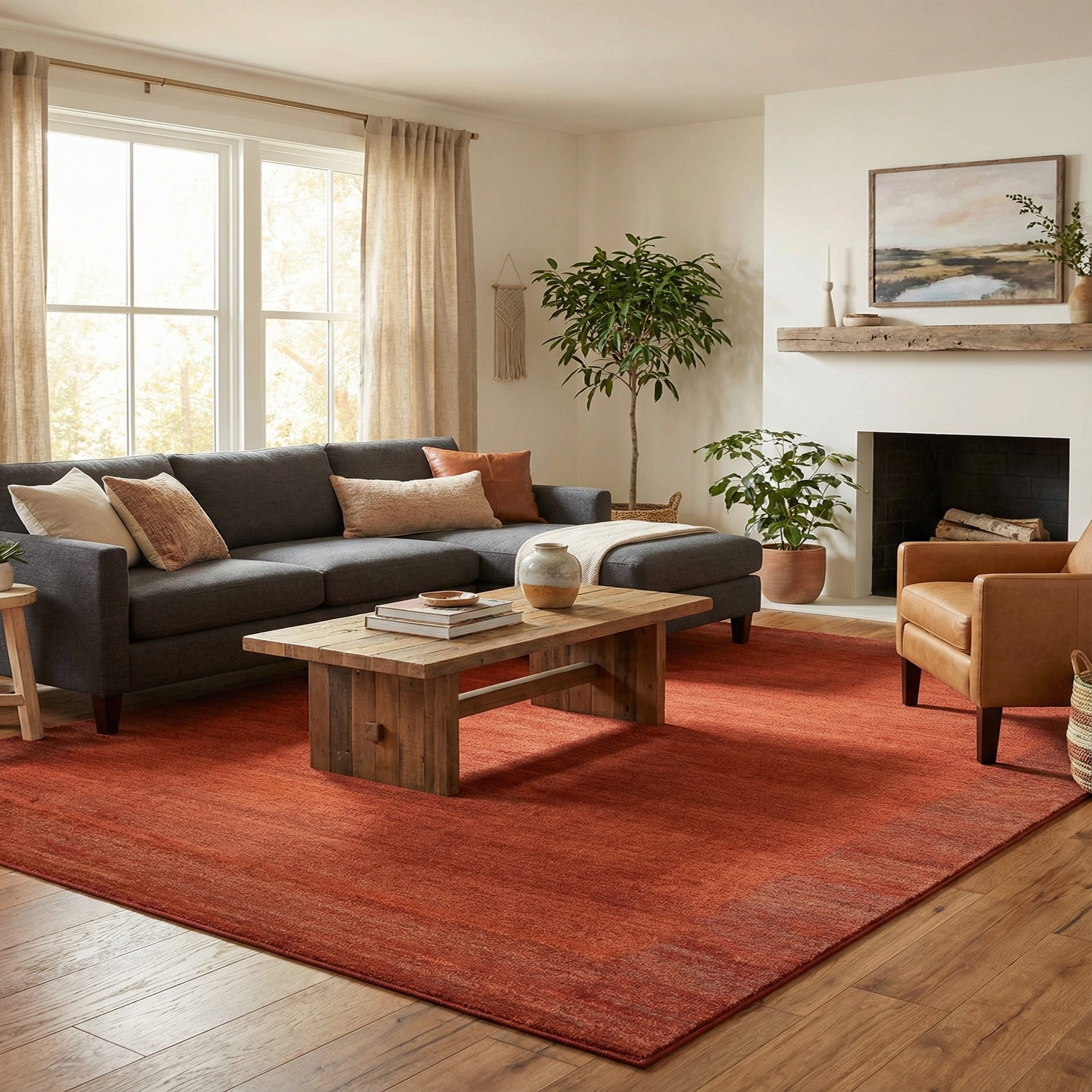 Primary color is Terracotta. Colors in this rug include: Terracotta, Red.