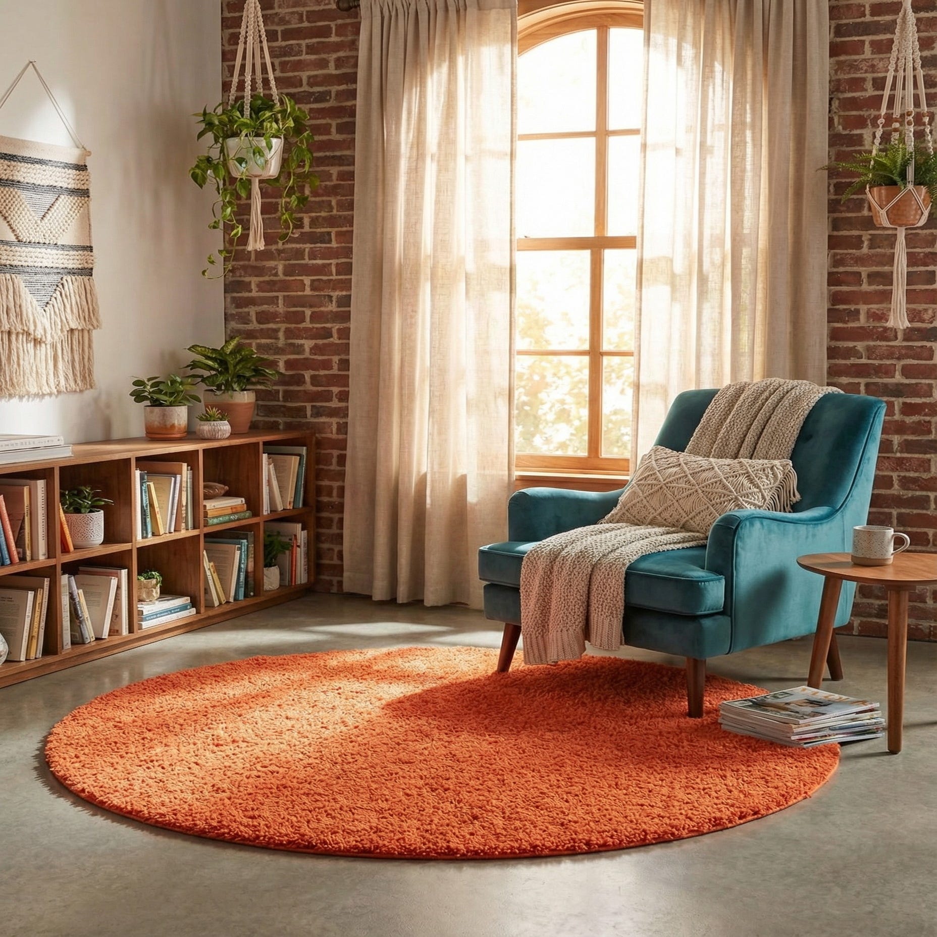 5' 3 x 5' 3 Solid Shag Round Rug