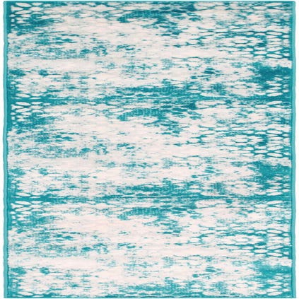 Primary color is Turquoise. Colors in this rug include: Turquoise, Gray, Ivory.
