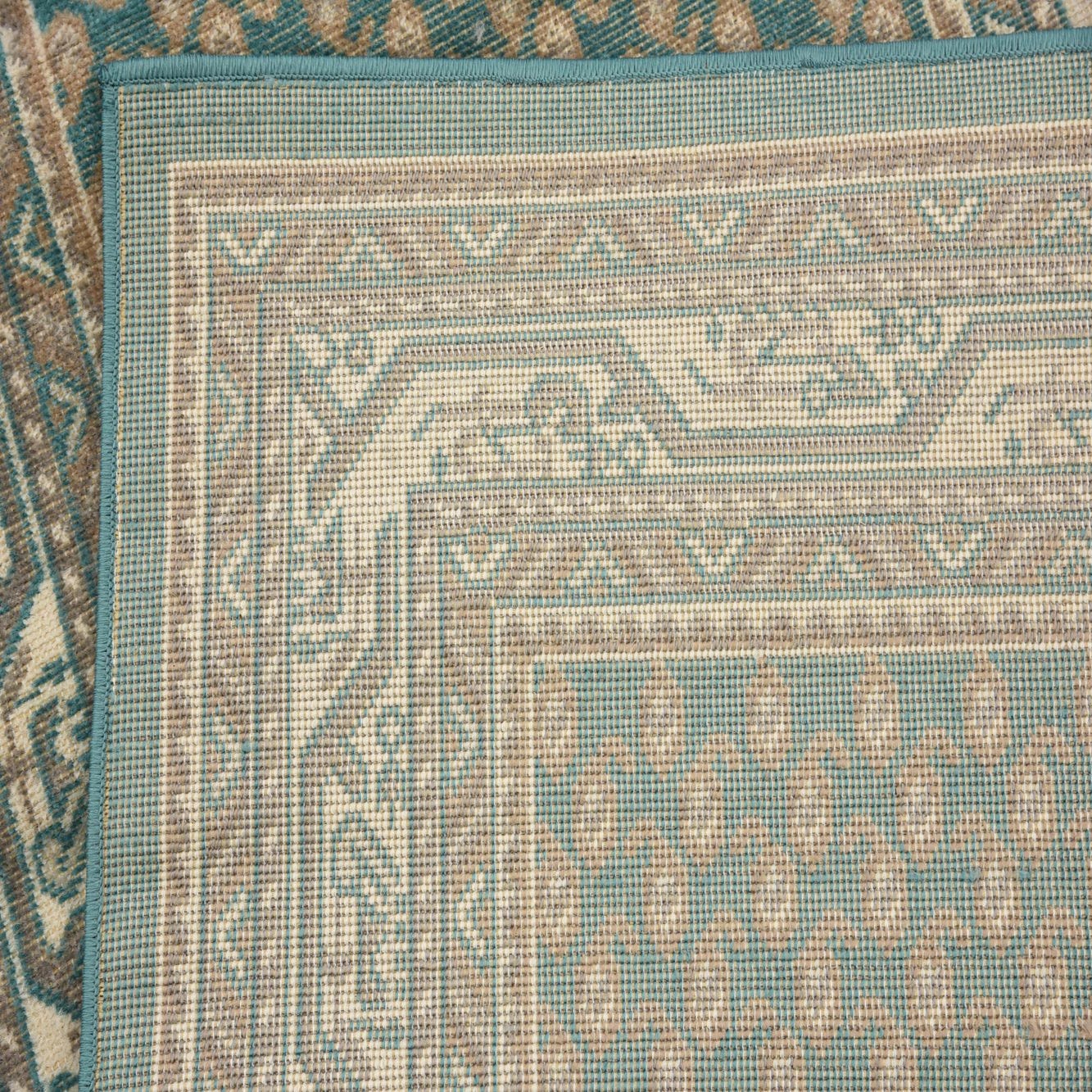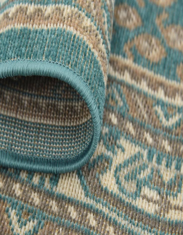 Primary color is Turquoise. Colors in this rug include: Turquoise, Beige, Gray.