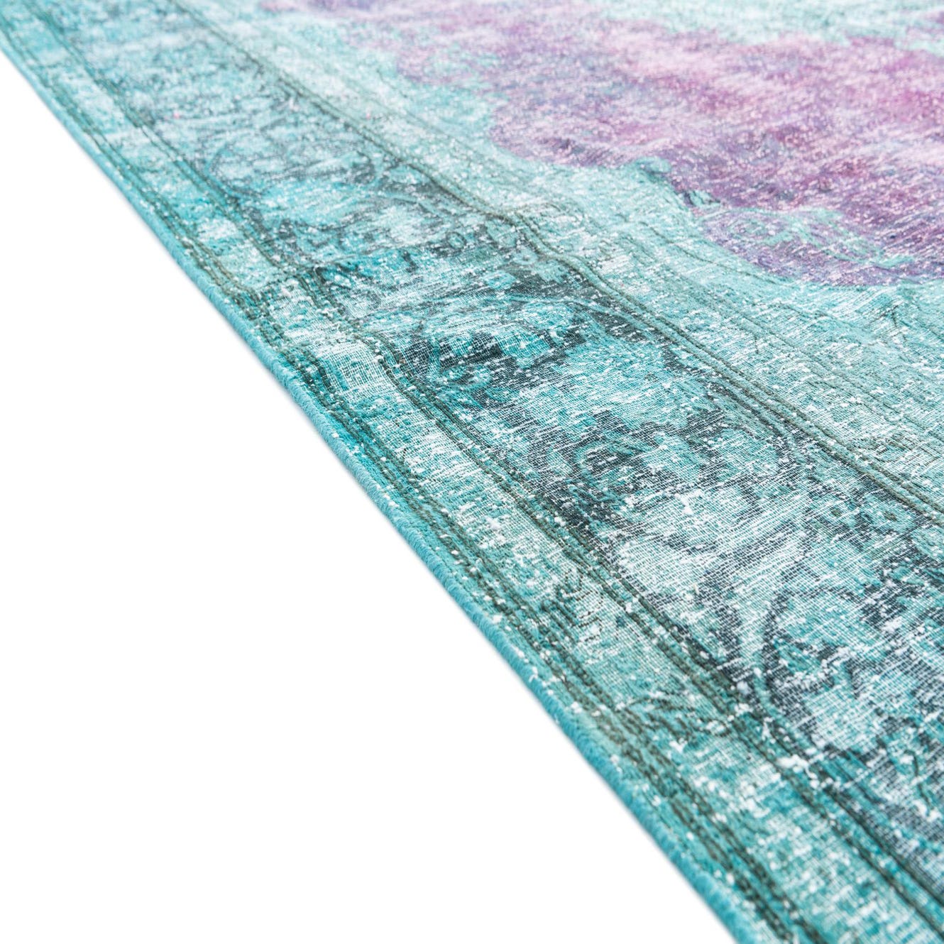Primary color is Turquoise. Colors in this rug include: Turquoise, Black, Pink.