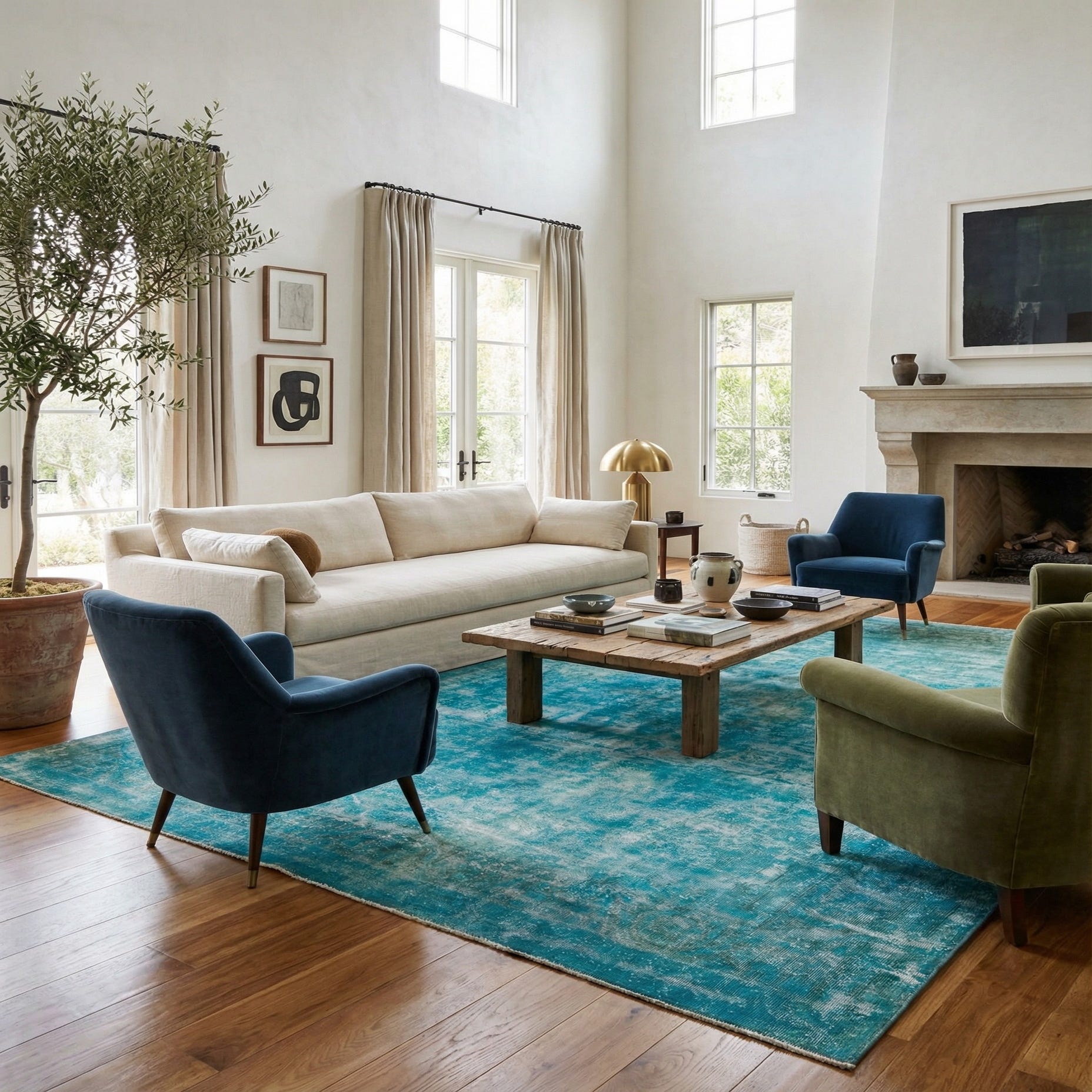 Primary color is Turquoise. Colors in this rug include: Turquoise, Ivory, Brown.
