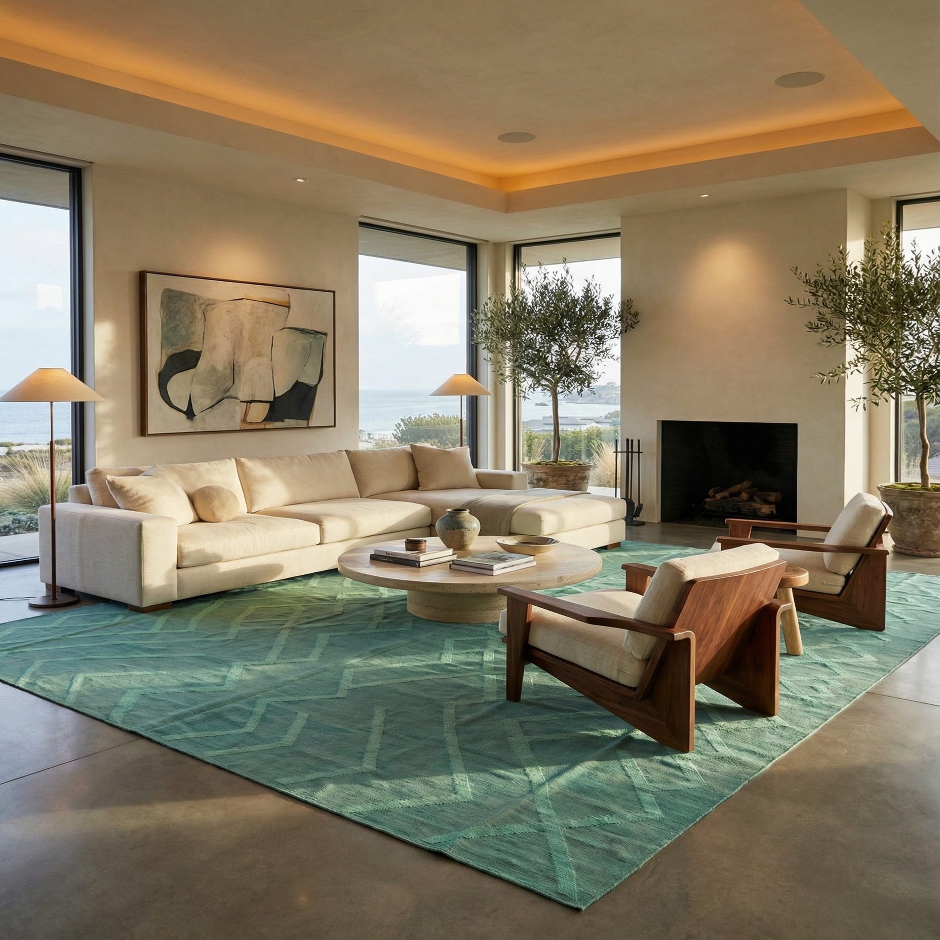 Primary color is Turquoise. Colors in this rug include: Turquoise, Light Green.