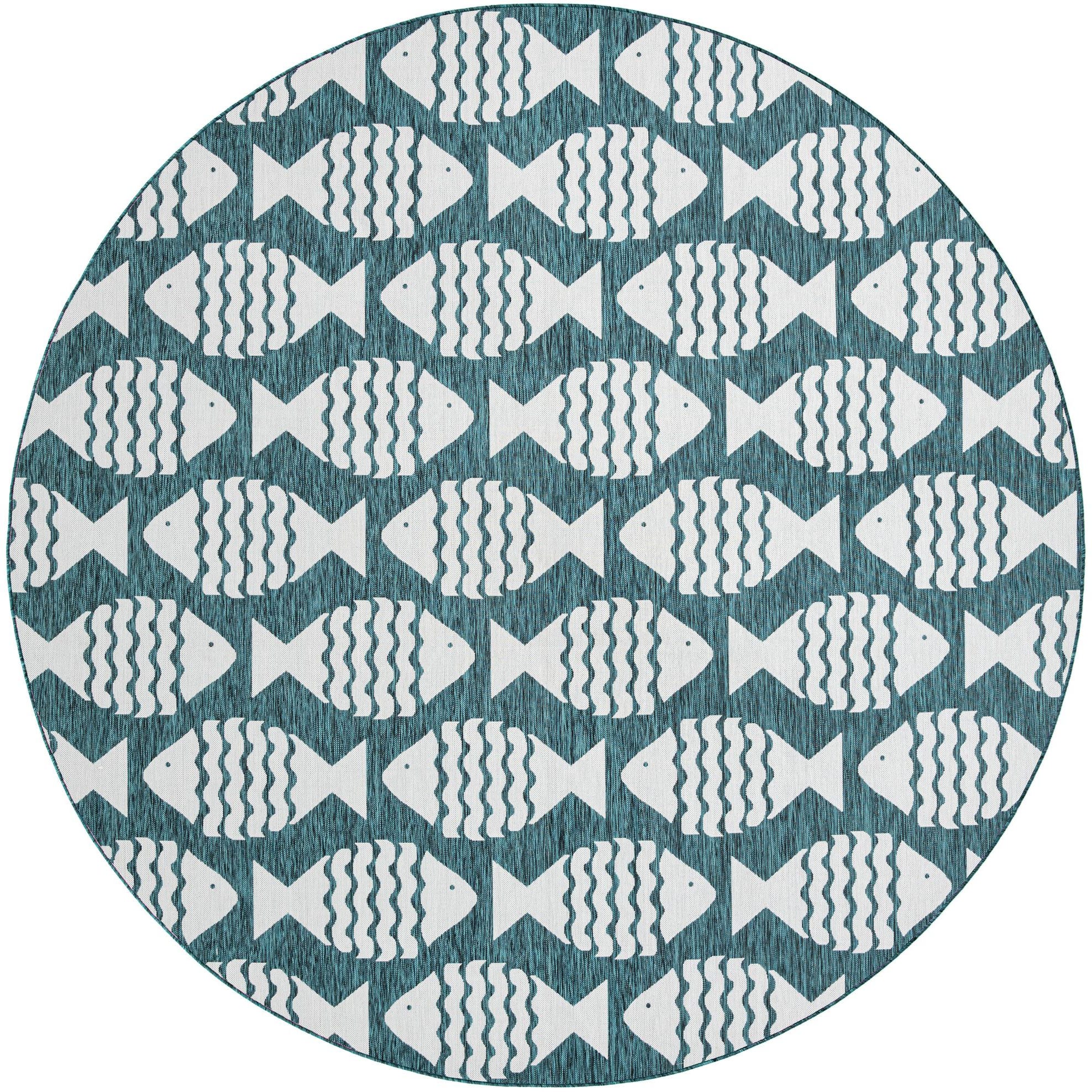 13' x 13' Washable Coastal Indoor / Outdoor Round Rug