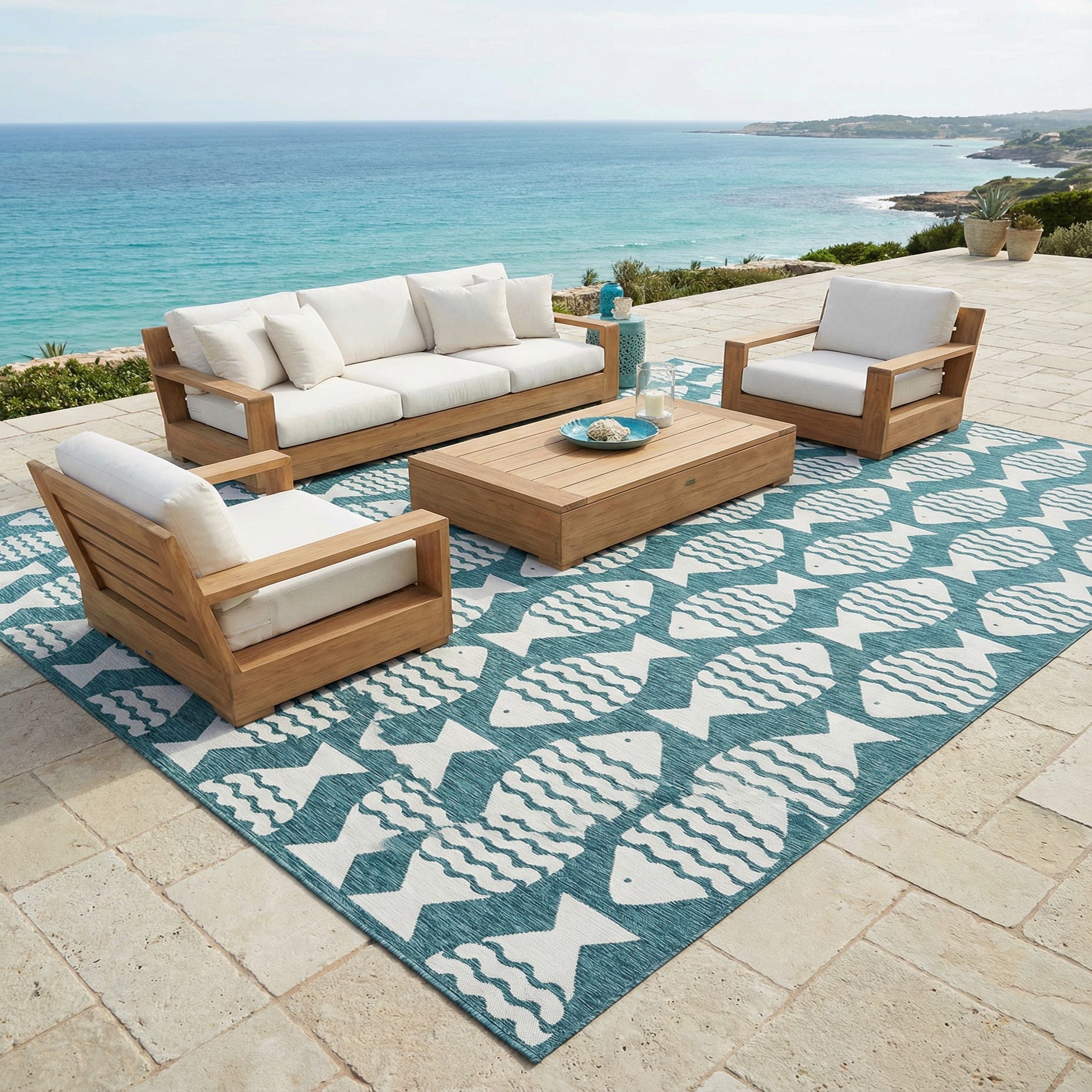 13' x 13' Washable Coastal Indoor / Outdoor Square Rug