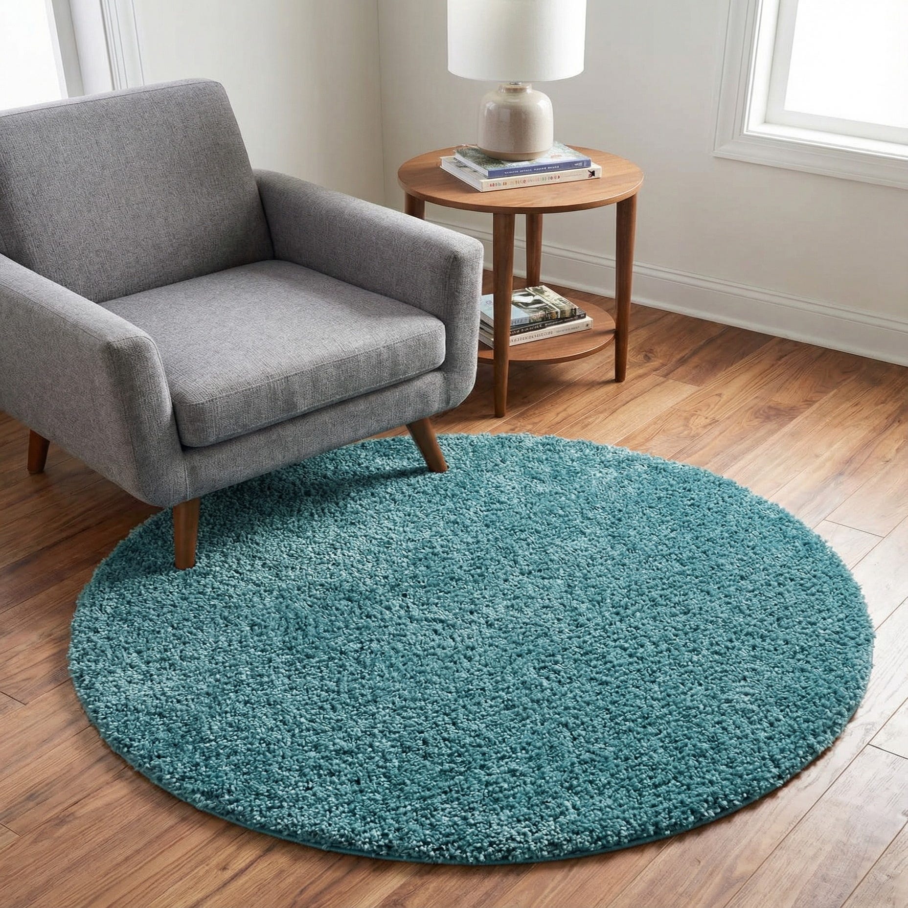 3' 3 x 3' 3 Soft Solid Shag Round Rug