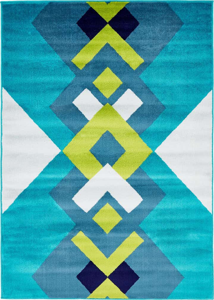 Primary color is Turquoise. Colors in this rug include: Turquoise, Gray, Ivory, Light Green, Navy Blue.