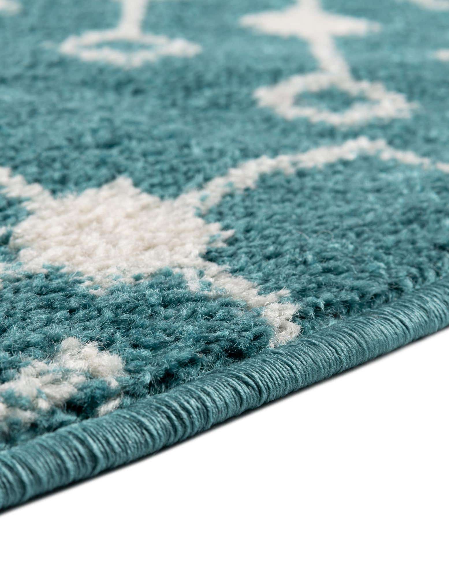 Primary color is Turquoise. Colors in this rug include: Turquoise, Ivory.