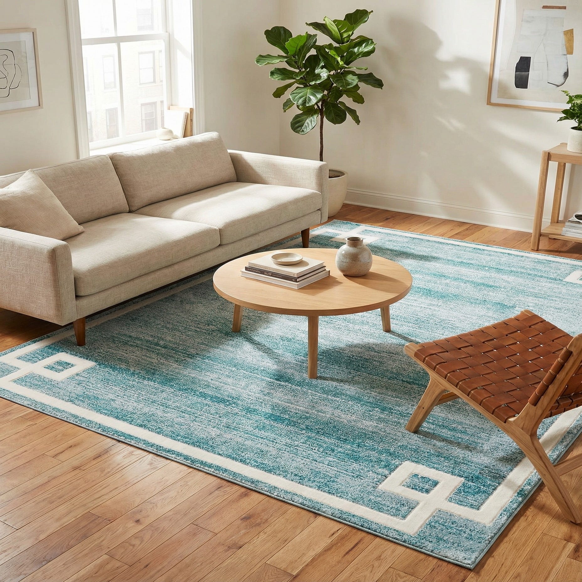 Primary color is Turquoise. Colors in this rug include: Turquoise, Ivory, Light Blue.
