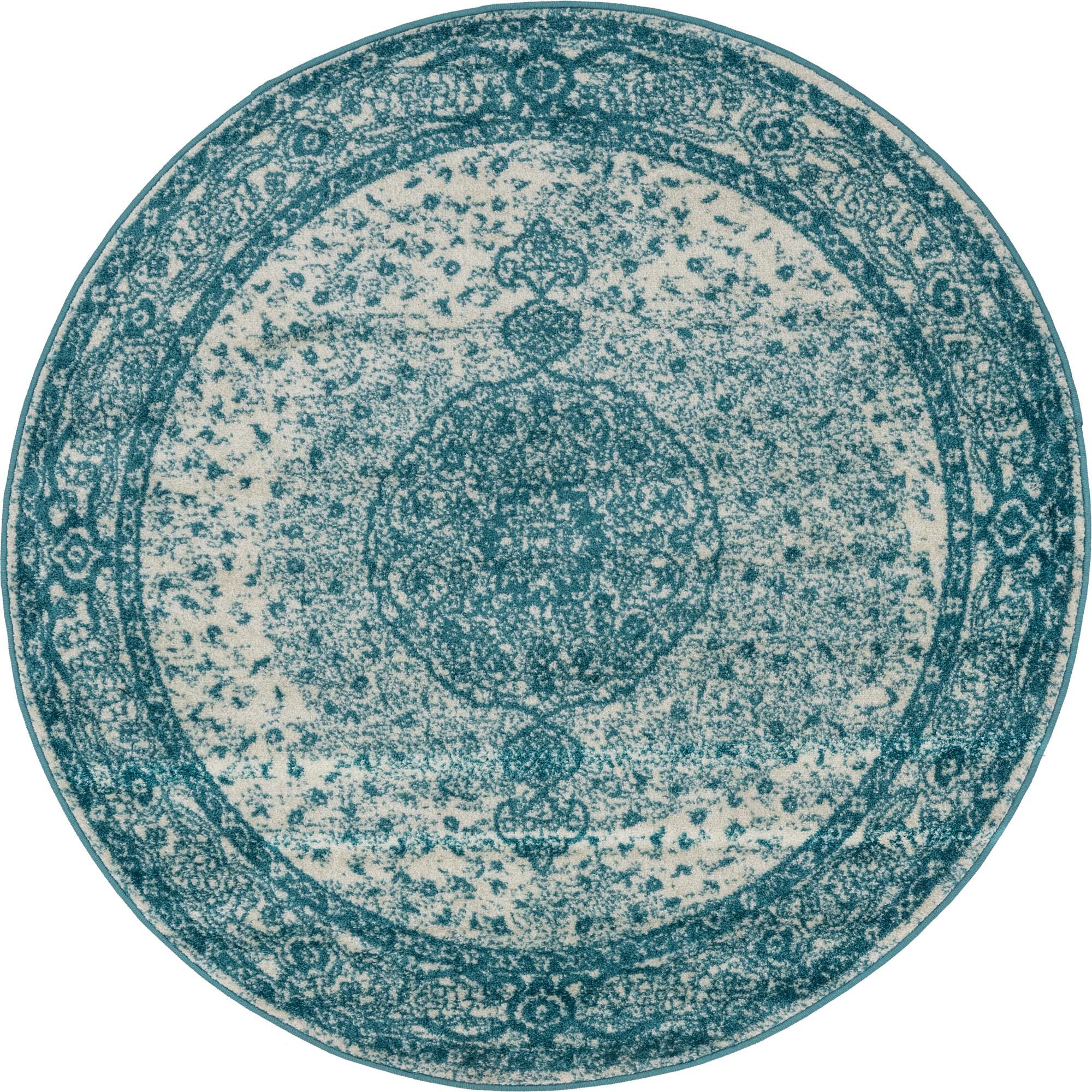 Primary color is Turquoise. Colors in this rug include: Turquoise, Ivory.