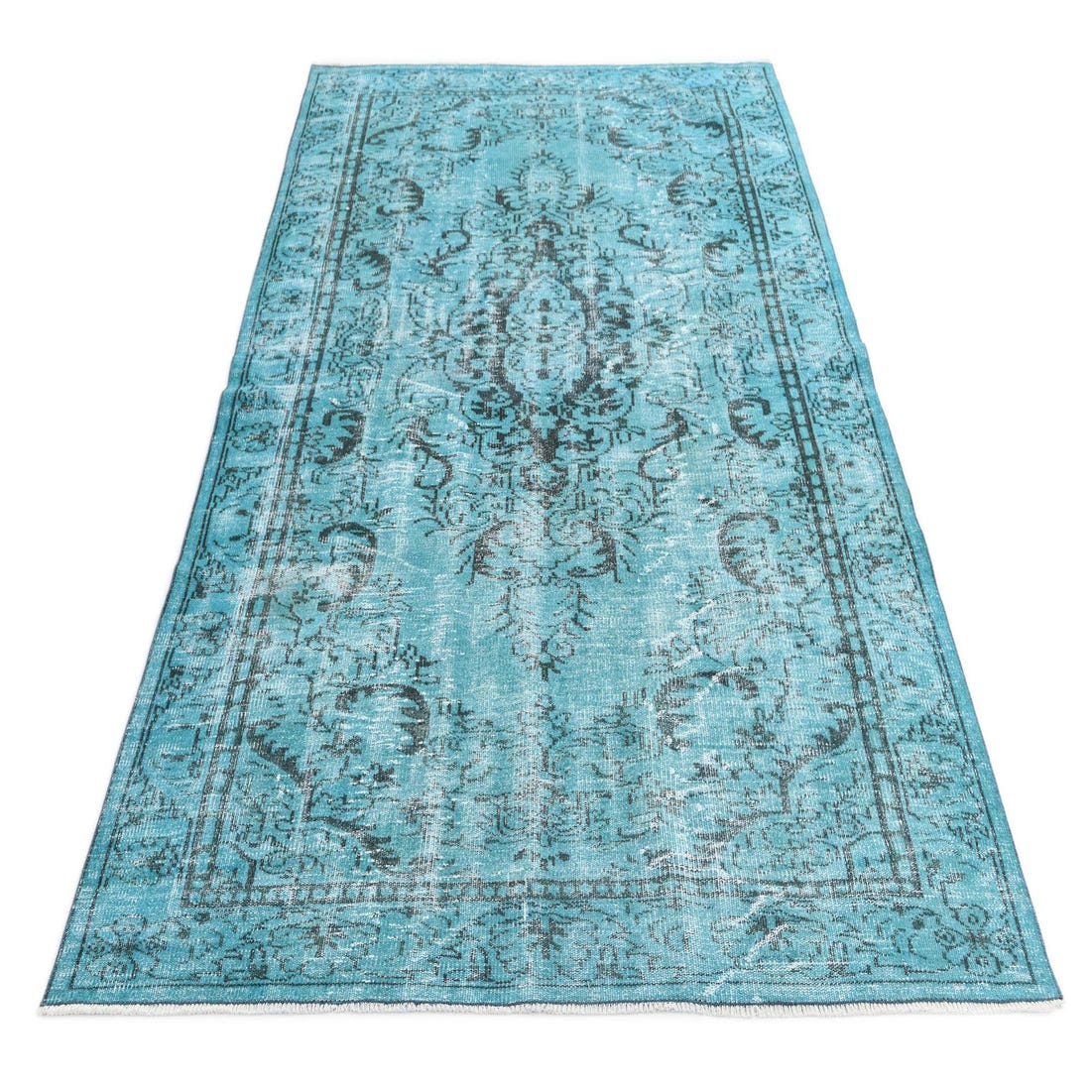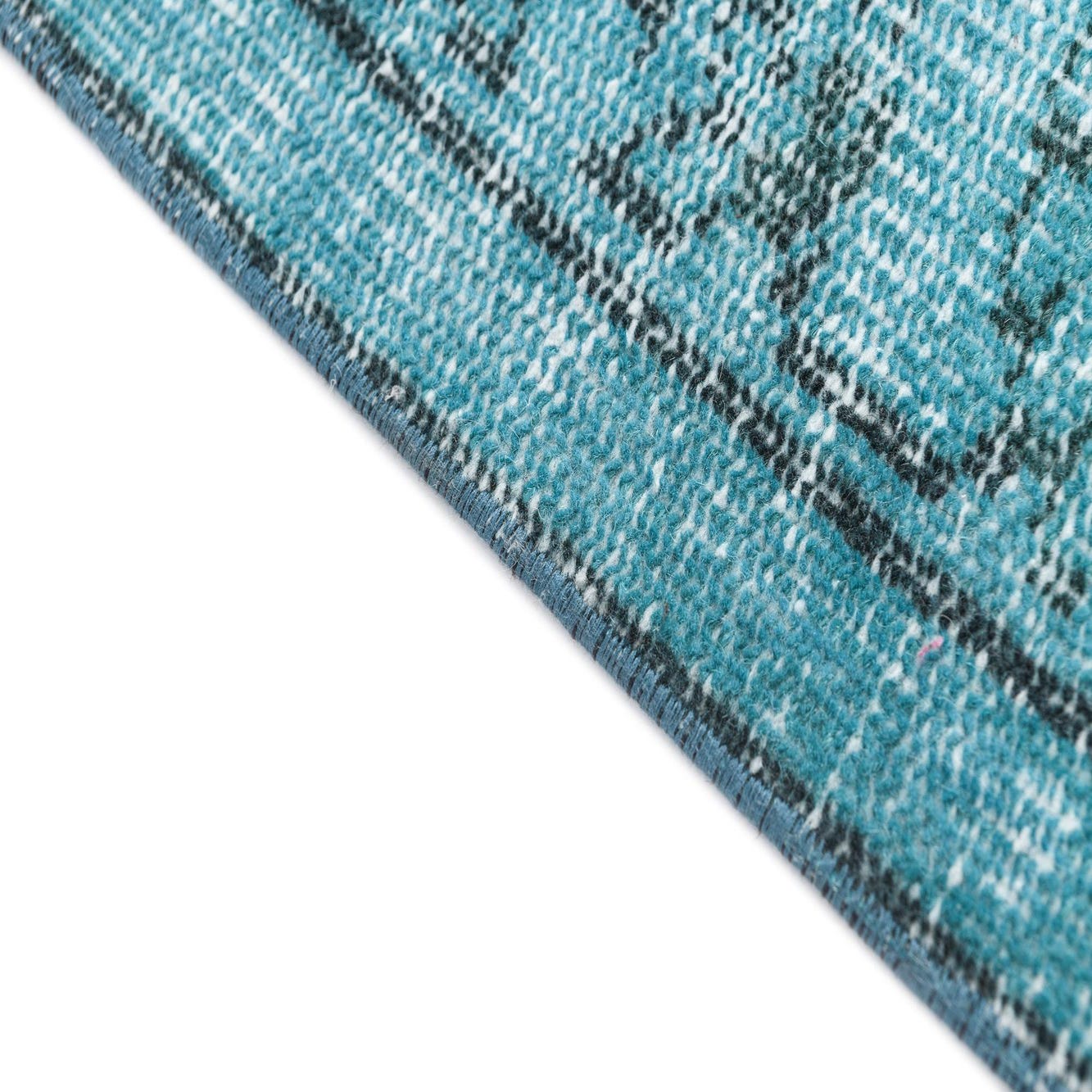 Primary color is Turquoise. Colors in this rug include: Turquoise, Black, Beige.