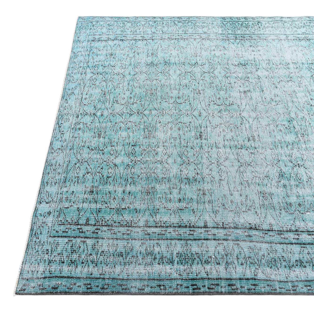 Primary color is Turquoise. Colors in this rug include: Turquoise, Black, Beige.