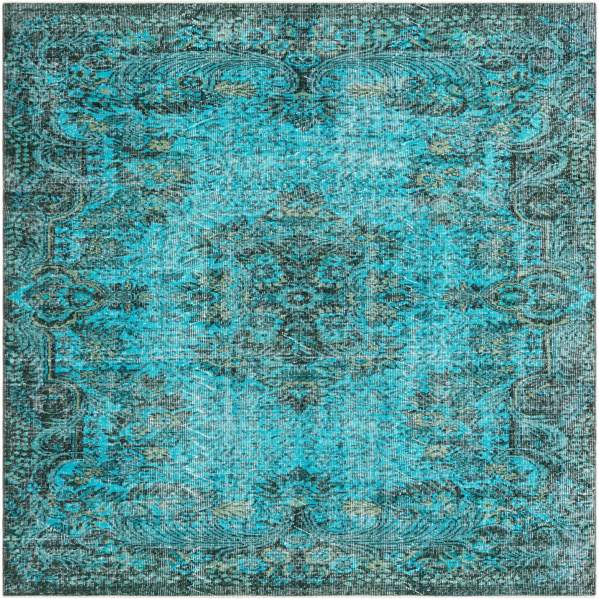 Primary color is Turquoise. Colors in this rug include: Turquoise, Beige, Black, Brown, Teal, Silver.
