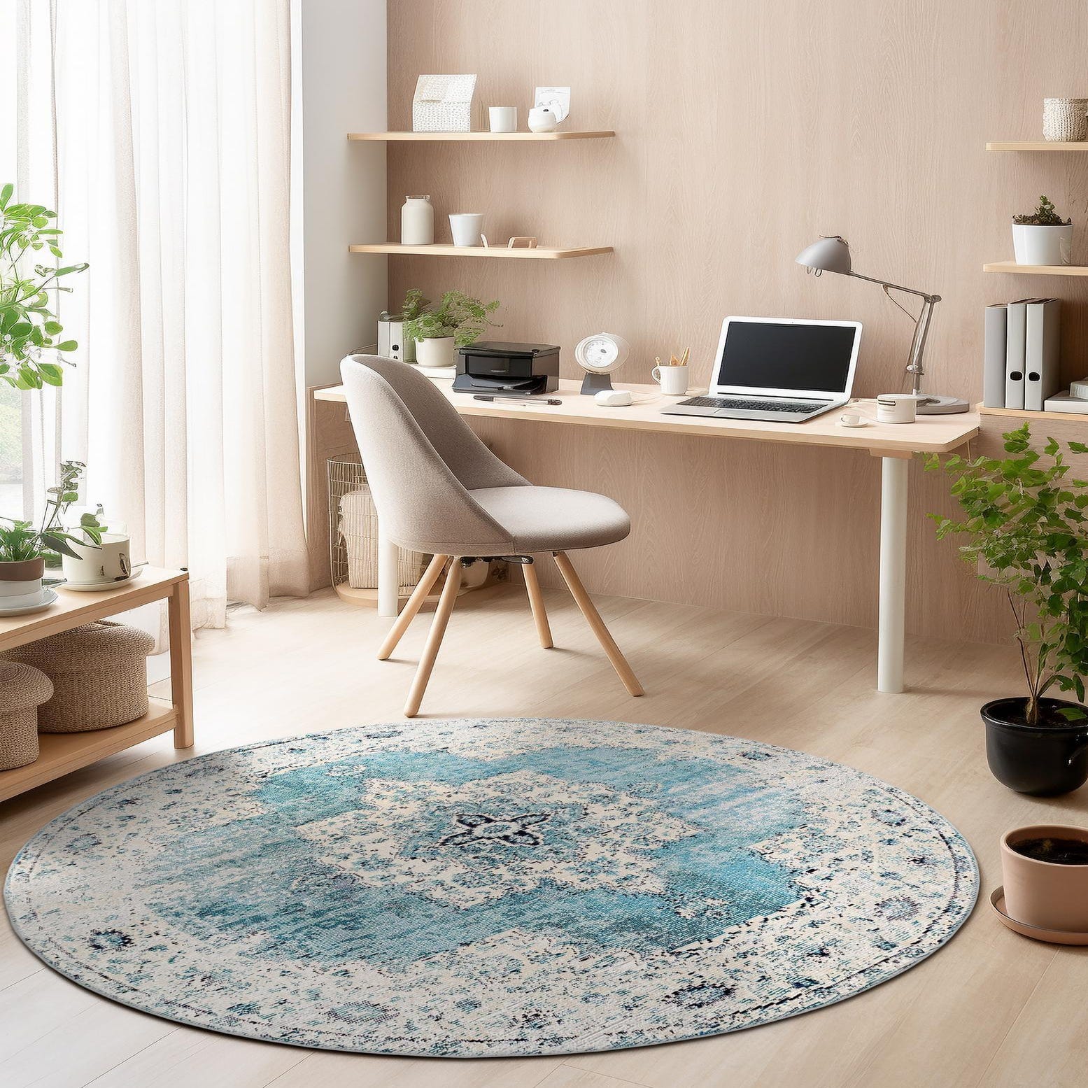 Primary color is Turquoise. Colors in this rug include: Turquoise, Cream, Teal, Navy Blue, Beige.
