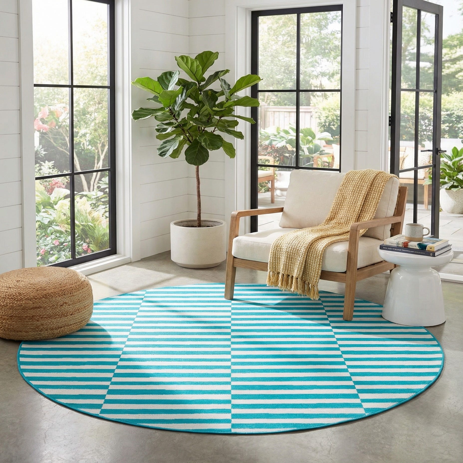 Primary color is Turquoise. Colors in this rug include: Turquoise, Ivory.