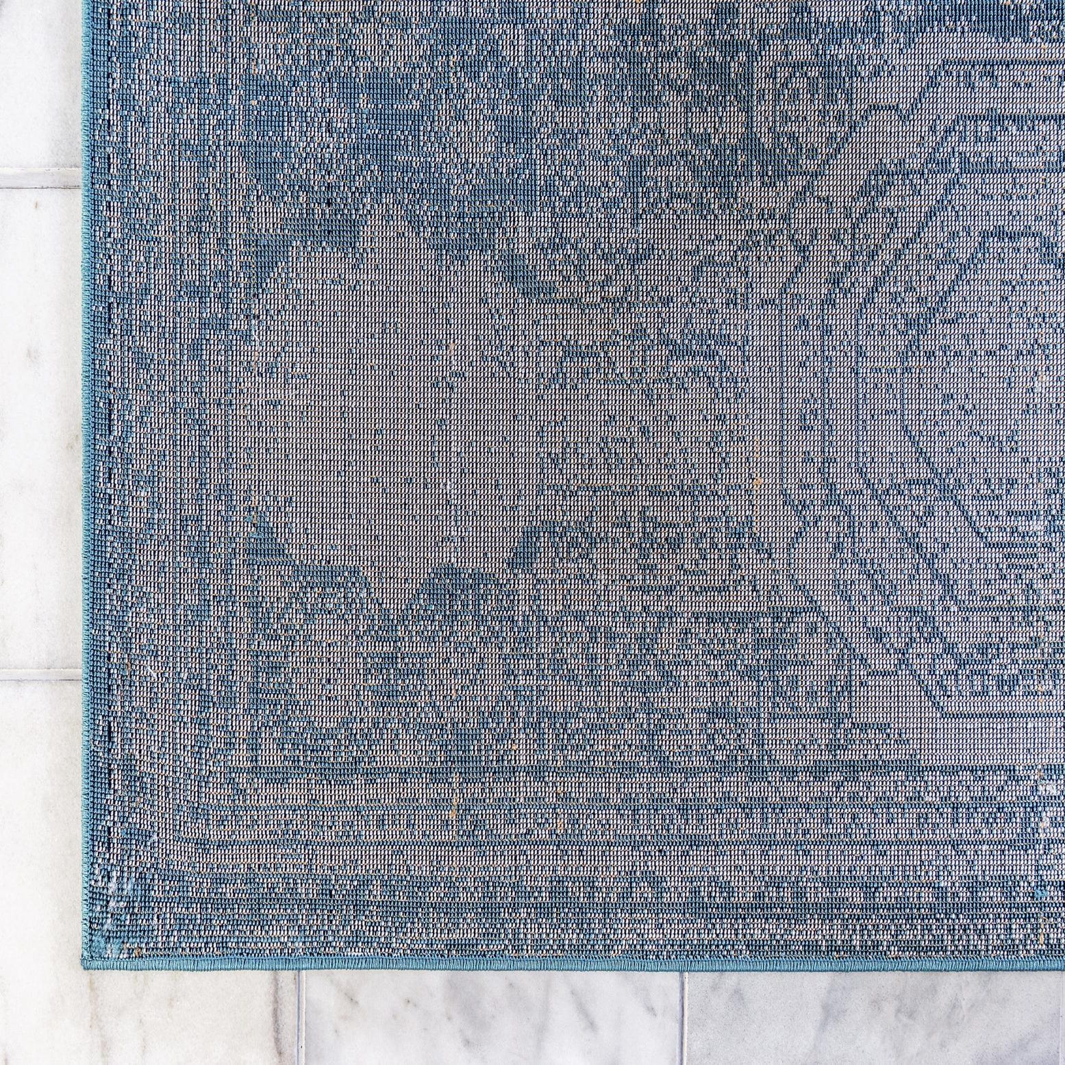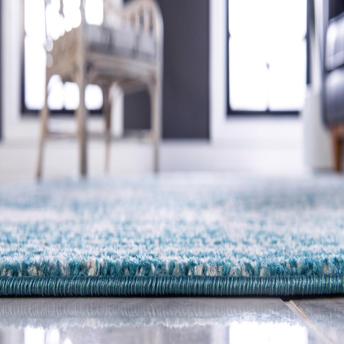Primary color is Turquoise. Colors in this rug include: Turquoise, Ivory.