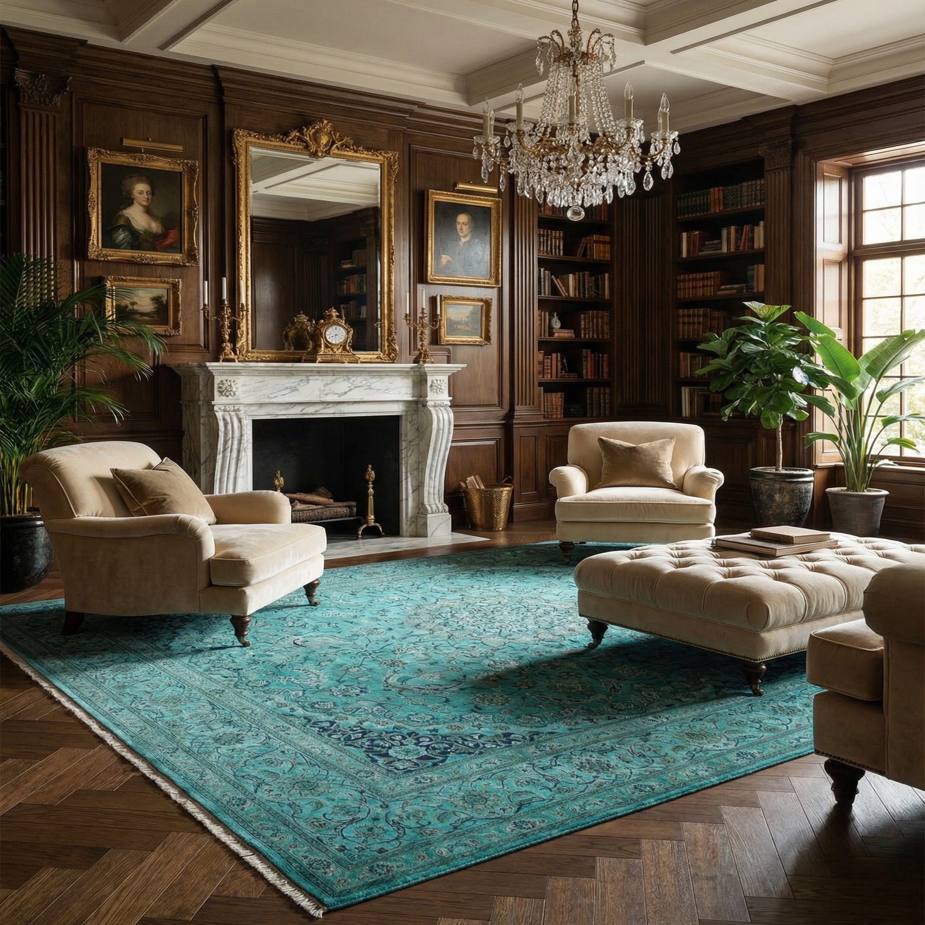 Primary color is Turquoise. Colors in this rug include: Turquoise, Blue, Brown.