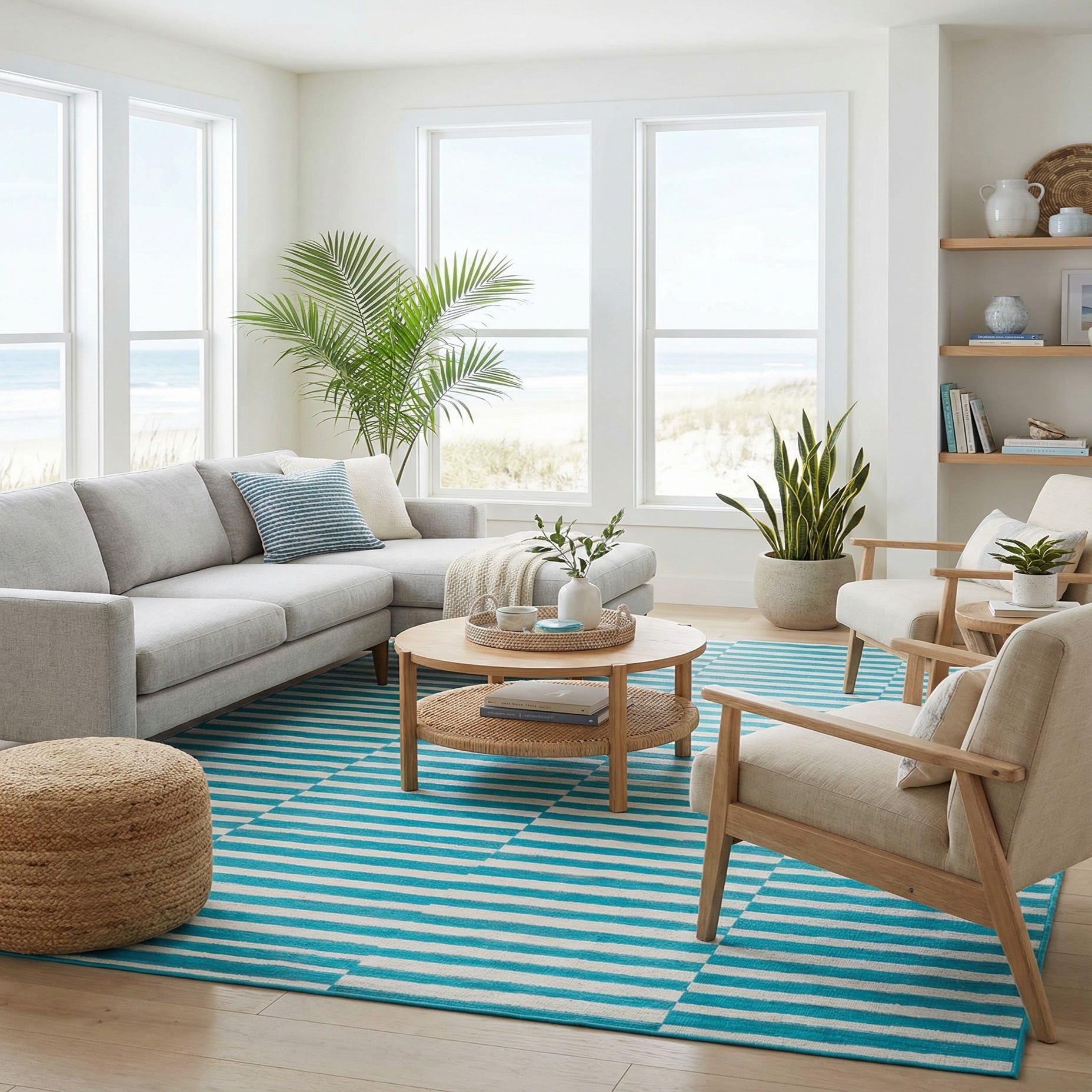 Primary color is Turquoise. Colors in this rug include: Turquoise, Ivory.