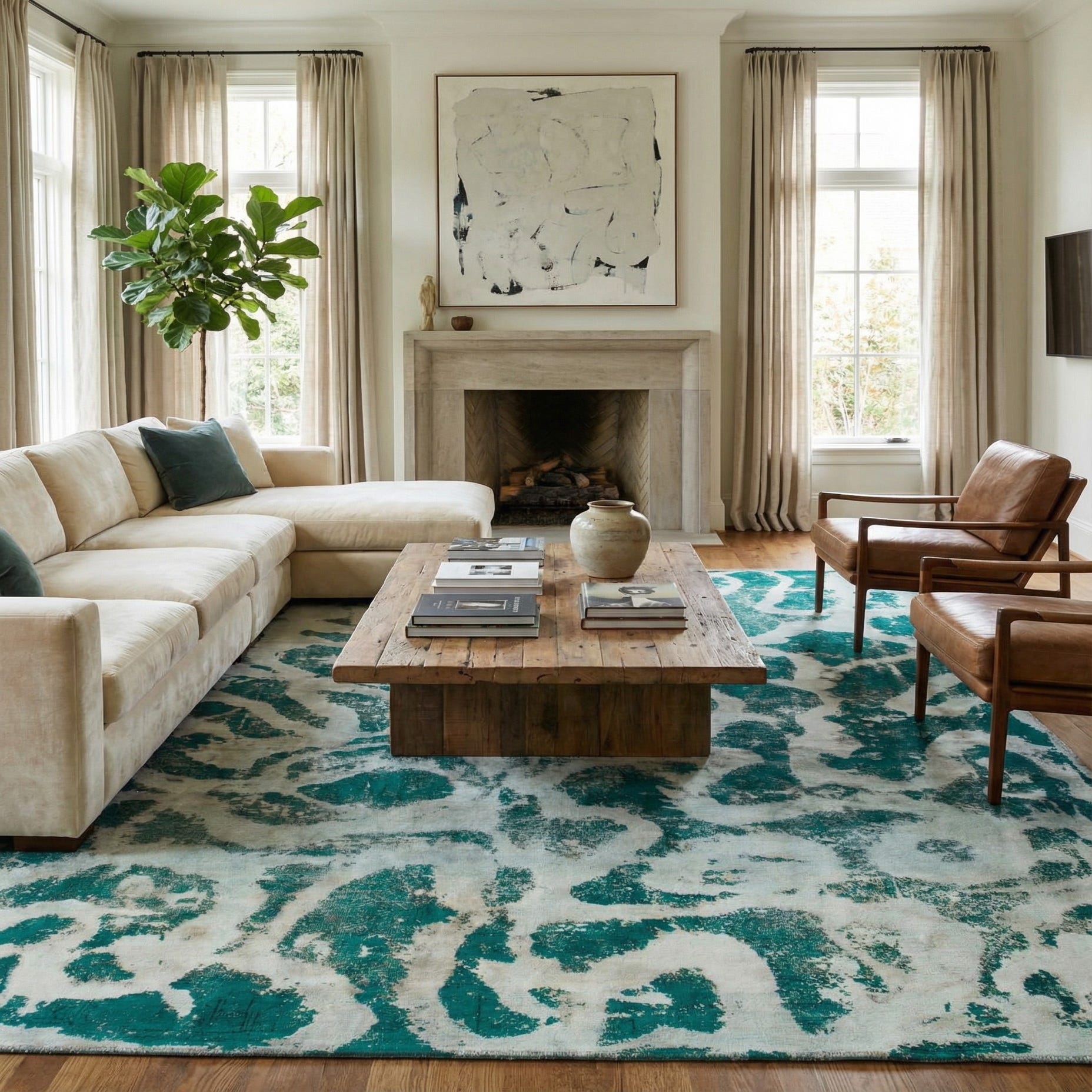 Primary color is Turquoise. Colors in this rug include: Turquoise, Beige, Blue.